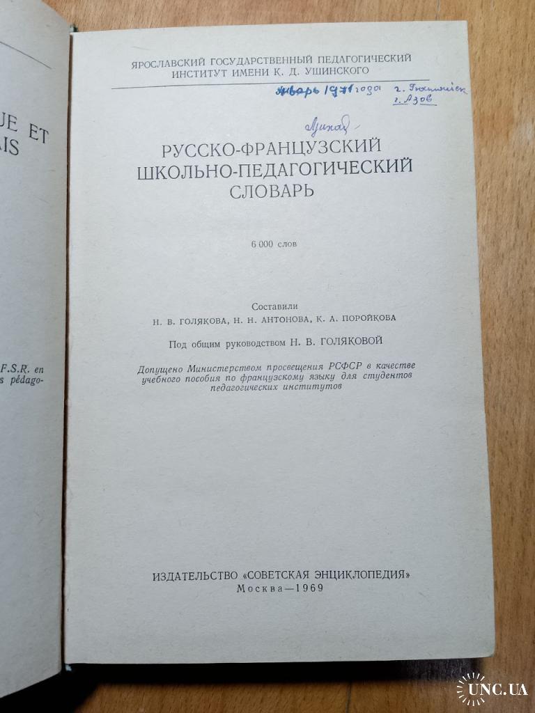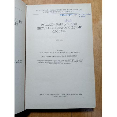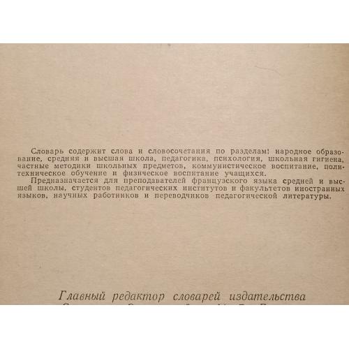 Русско-французский школьно-педагогический словарь на 6000 слов.