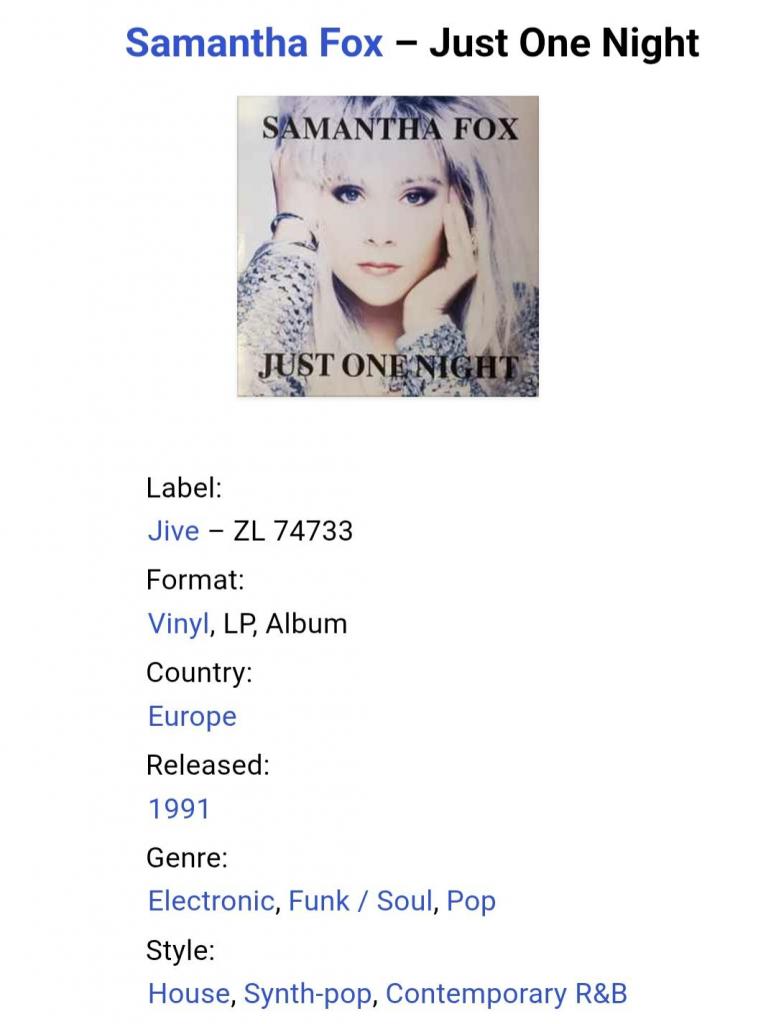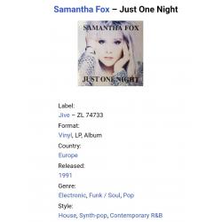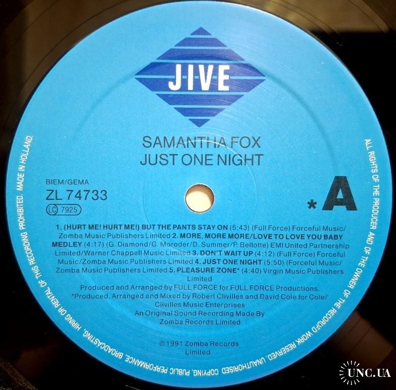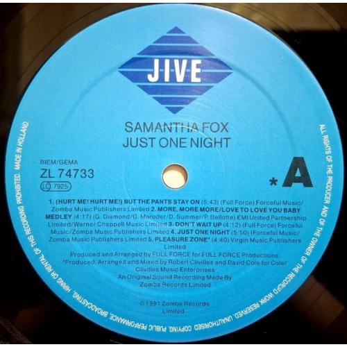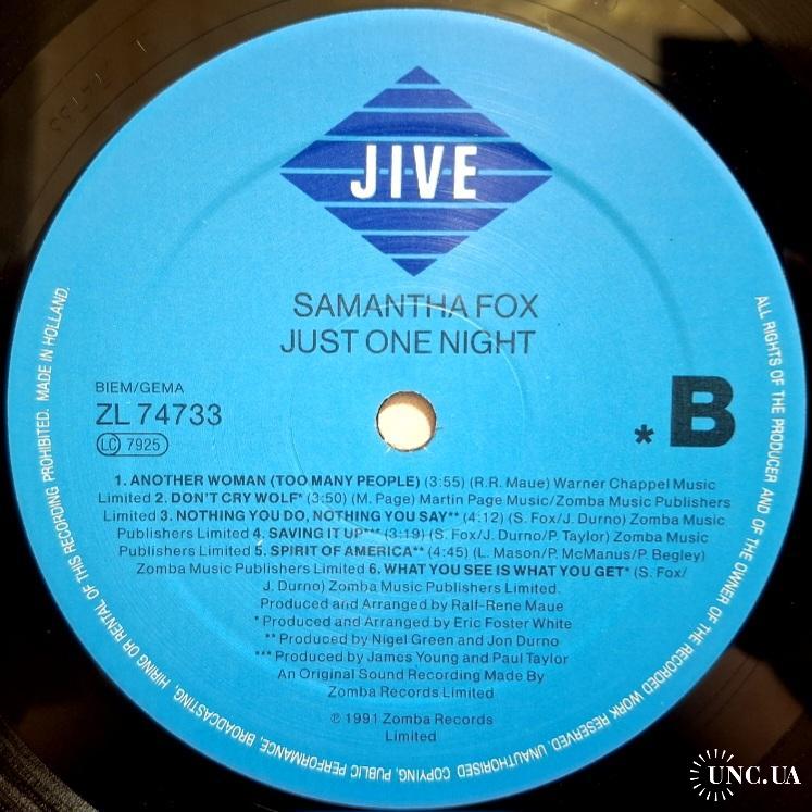 Вінілова платівка. Четвертий, в дискографії, студійний альбом Британської еротичної моделі, кіноактриси і музичної виконавиці стилів поп-денс, євродиско, Саманти Карен Фокс (Just One Night) 1991. Випуск фірми (Jive) Holland, 1991-ий рік. Оригінальне, першопресове Голландське видання. Лімітований тираж (Limited Edition). Стан платівки ЕХ+. Конверт глянцевий. Стан конверту ЕХ+. В комплекті внутрішня вставка (Ois). Відправка по Україні службами доставки: Нова Пошта, Укр Пошта, Делівері. Також відправляємо посилки за кордон по цілому світу.