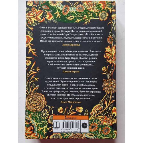 Конец XIX века, научно-технический прогресс набирает темпы, вовсю идут дебаты по медицинским вопросам. Эмансипированная вдова Кора Сиборн после смерти мужа решает покинуть Лондон и перебраться в уютную деревушку в графстве Эссекс, где местным викарием служит Уилл Рэнсом. Уже который день деревня взбудоражена слухами о мифическом змее, что объявился в окрестных болотах и питается человеческой плотью. Кора, увлеченная натуралистка и энтузиастка научного знания, не верит ни в каких сказочных драконов и решает отыскать причину странных россказней. Она считает, что змей — попросту неизвестный науке вид пресмыкающегося, который нужно описать для научных целей. Викарий же видит в панике, охватившей его паству, угрозу вере и потому тоже стремится как можно скорее выяснить правду. Двигаясь к истине с разных сторон, убежденные противники оказываются вовлечены в странную и таинственную историю. Изящный, умный, с литературной игрой роман принимает самые разные обличил — то детектива, то любовной истории, а то и романа нравов. Сара Перри ловко балансирует на грани между исторической реальностью и вымыслом, викторианским и модернистским романом: в ее книге читатель найдет и остроумных диккенсовских нищих, и любовные сцены, и поэтичные описания природы. Это фантазия на исторические темы, но фантазия полнокровная и живая.