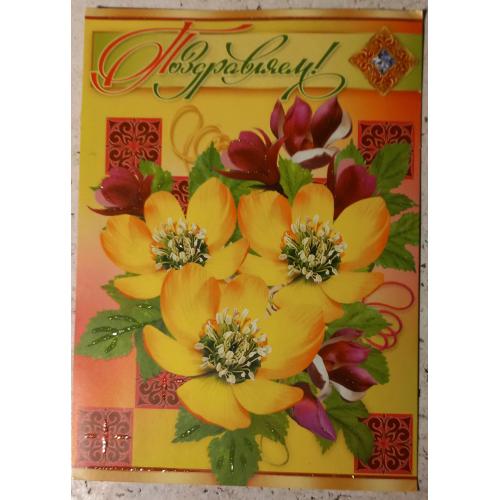 Открытка с глиттером (золотистыми блестками),с вклеенным именным листком. Поздравляем! 2015 г. Издана ТОВ «Свiт поздоровлень», ДП»Имэкс»,Запорожье. Без дефектов. Состояние отличное.