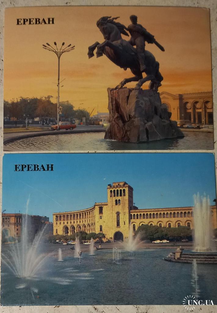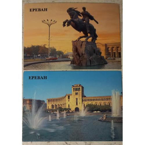 Фотооткрытка. Ереван. Памятник Давиду Сасунскому. Фото В.Полякова. 1986 г. Скульптор Е. Кочар, архитектор М. Мазманян. Изд-во «Плакат», Москва. Чистая. Без дефектов. Состояние отличное. Фотооткрытка. Ереван. Административное здание на площади имени В. И.Ленина. Фото В.Полякова. 1986 г. Изд-во «Плакат», Москва. Чистая. Без дефектов. Состояние отличное.
