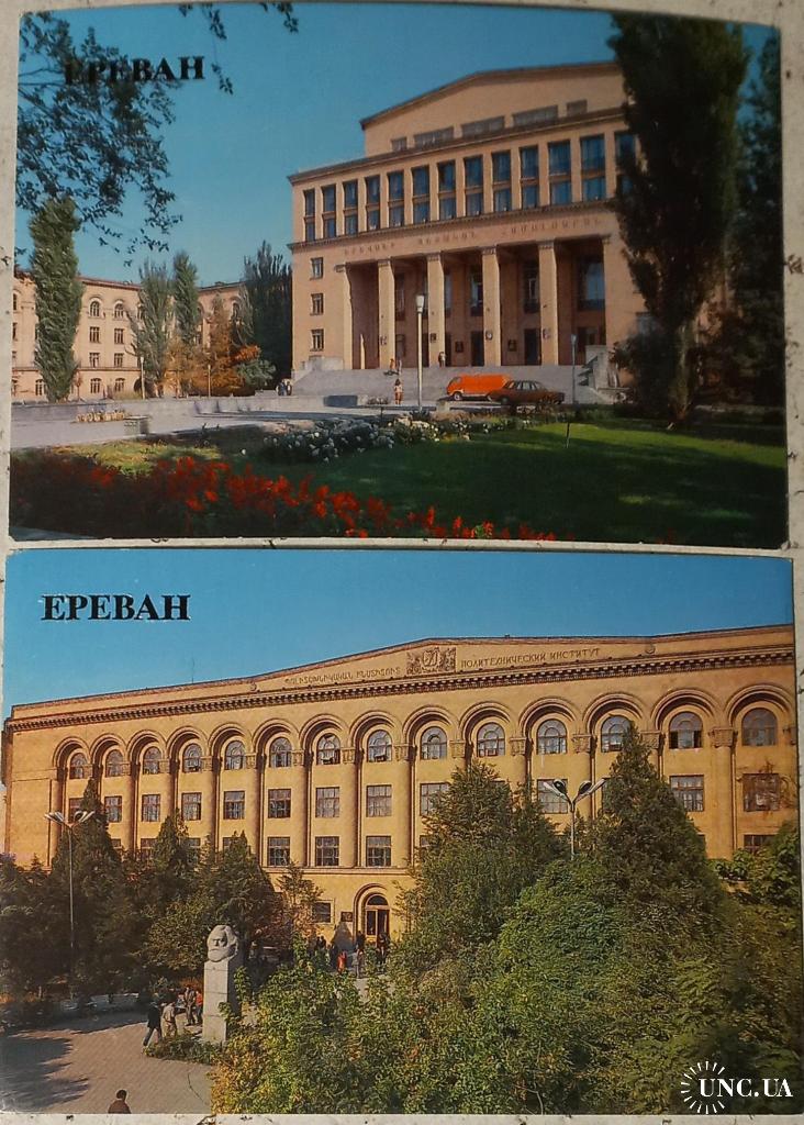 Фотооткрытка. Ереван. Главный корпус Ереванского государственного университета. Фото В.Полякова. 1986 г. Изд-во «Плакат»,Москва. Чистая. Без дефектов. Состояние отличное. Фотооткрытка. Ереван. Главный корпусЕреванского политехнического института имени К. Маркса. . Изд-во «Плакат», Москва. Чистая. Без дефектов. Состояние отличное.