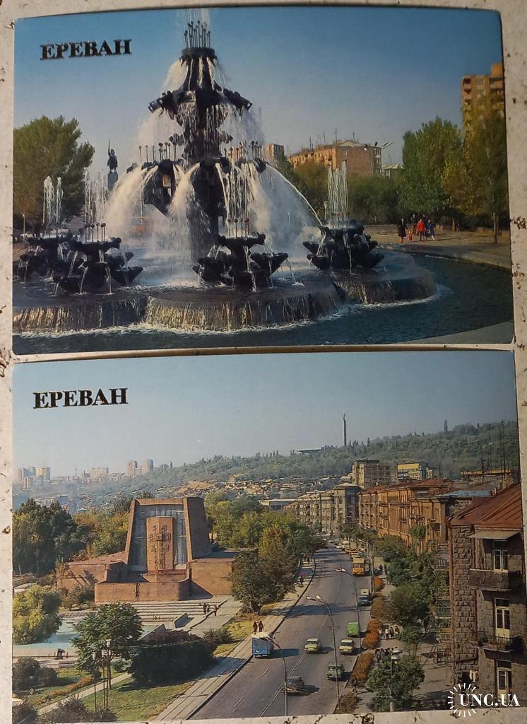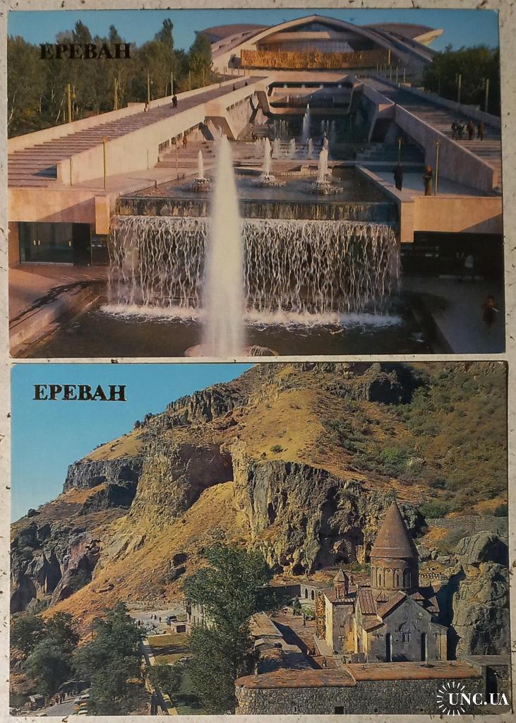 Фотооткрытка. Ереван. Фонтан на площади имени Гая(Гайка Бжишкянца). Фото В.Полякова. 1986 г.Изд-во «Плакат», Москва. Чистая. Без дефектов. Состояние отличное. Фотооткрытка. Ереван. Дом камерной музыки имени Комитаса. Изд-во «Плакат», Москва. Чистая. Без дефектов. Состояние отличное.