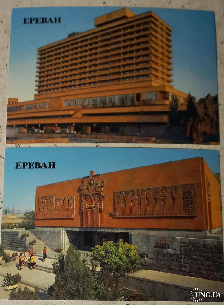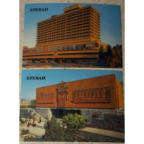 Фотооткрытка. Ереван. Гостиница «Двин». Фото В.Полякова. 1986 г.Изд-во «Плакат», Москва. Чистая. Без дефектов. Состояние отличное. Фотооткрытка. Ереван. Музей Зребуни. Фото В. Полякова. 1986 г.Изд-во «Плакат», Москва. Чистая. Без дефектов. Состояние отличное.