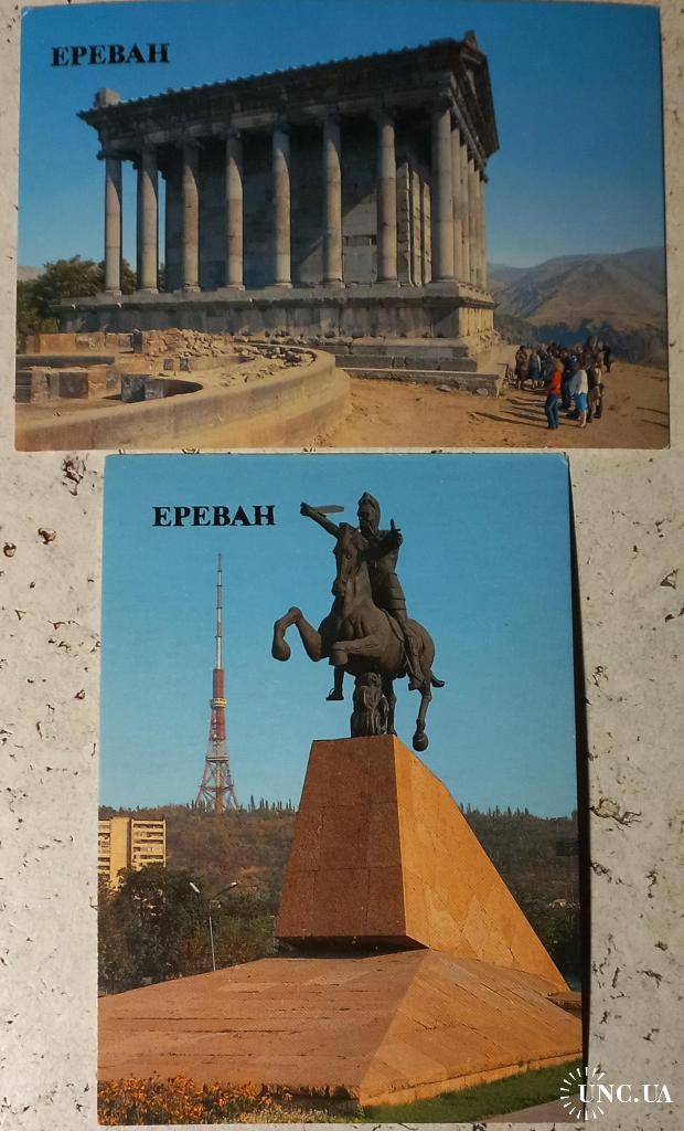 Фотооткрытка. Ереван. Гарин. Фото В.Полякова. 1986 г.Языческий храм. I век.Изд-во «Плакат», Москва. Чистая. Без дефектов. Состояние отличное. Фотооткрытка. Ереван. Памятник Вардану Мамиконяну. Фото В.Полякова. 1986 г.Скульптор Е.Кочар, архитектор С. Кюркчян. Изд-во «Плакат», Москва. Чистая. Без дефектов. Состояние отличное.