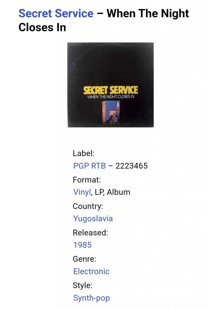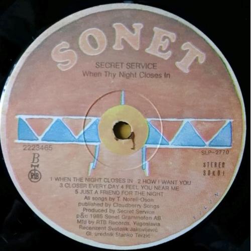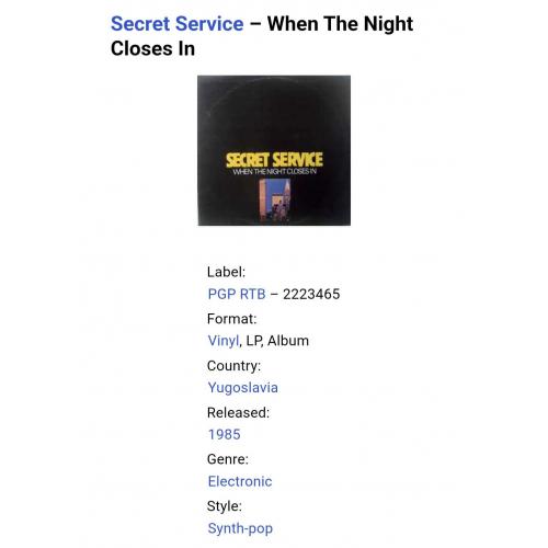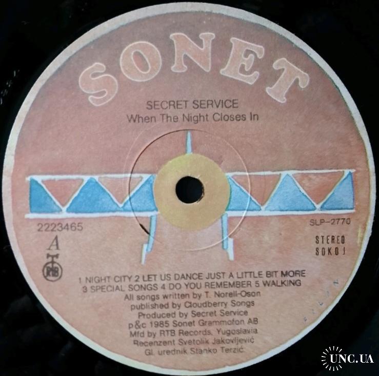 Вінілова платівка. П,ятий, в дискографії, студійний альбом Шведської сінтіпоп, поп нью вейв групи Secret Service, яка складалась з учасників Тіма Норелла, Ульфа Валберга, Джона Бекера, Матса Ліндберга, Джемі Боргера та Андерса Ханнсона (When The Night Closes In) 1985. Випуск фірми (PGP RTB / Sonet) Yugoslavia, 1985-ий рік. Оригінальне Югославське видання. Стан платівки ЕХ+. Стан конверту ЕХ+. Відправка по Україні службами доставки: Нова Пошта, Укр Пошта, Делівері. Також відправляємо посилки за кордон по цілому світу.