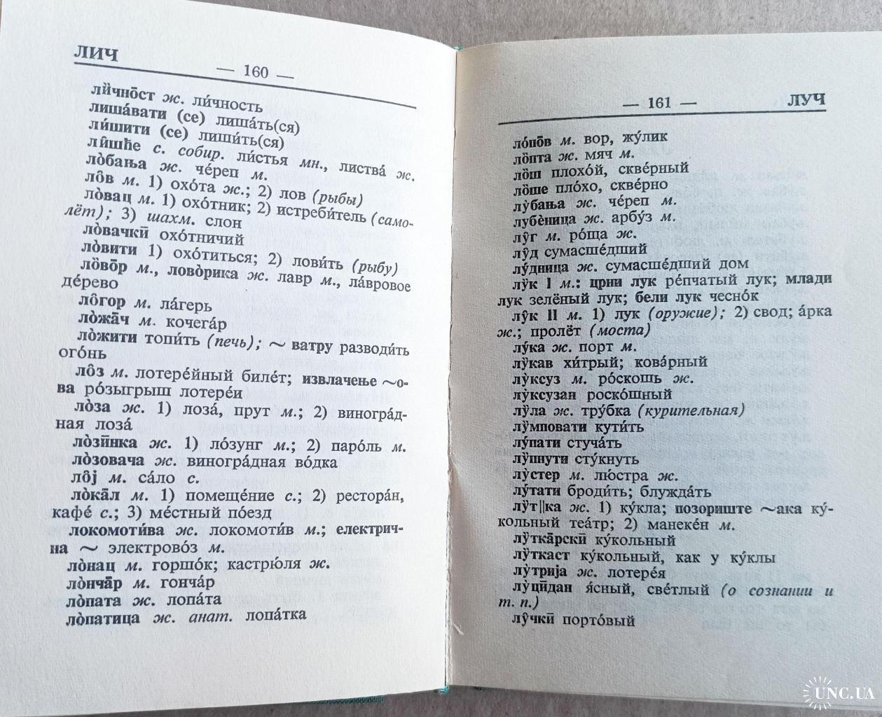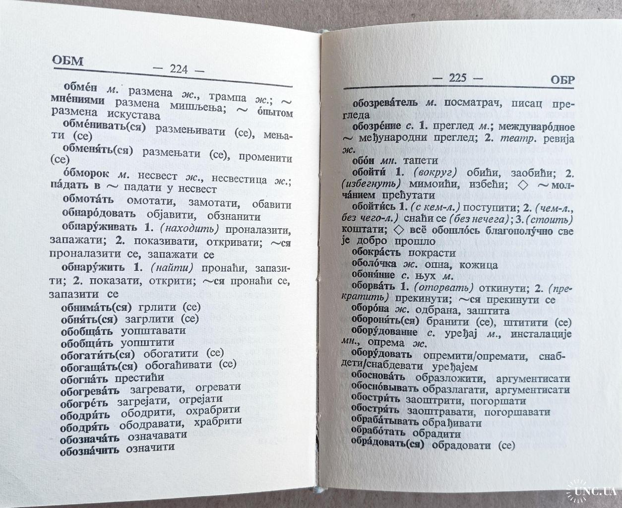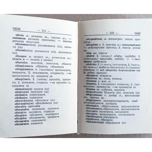 Кишеньковий російсько-сербсько-хорватський словник містить 9000 слів. Кишеньковий сербсько-хорватсько-російський словник містить 9600 слів. Окремим додатком до словників надається список географічних назв. Розмір словників - 9х13 см, рік видання - 1970. Сліди зносу на обкладинках словників