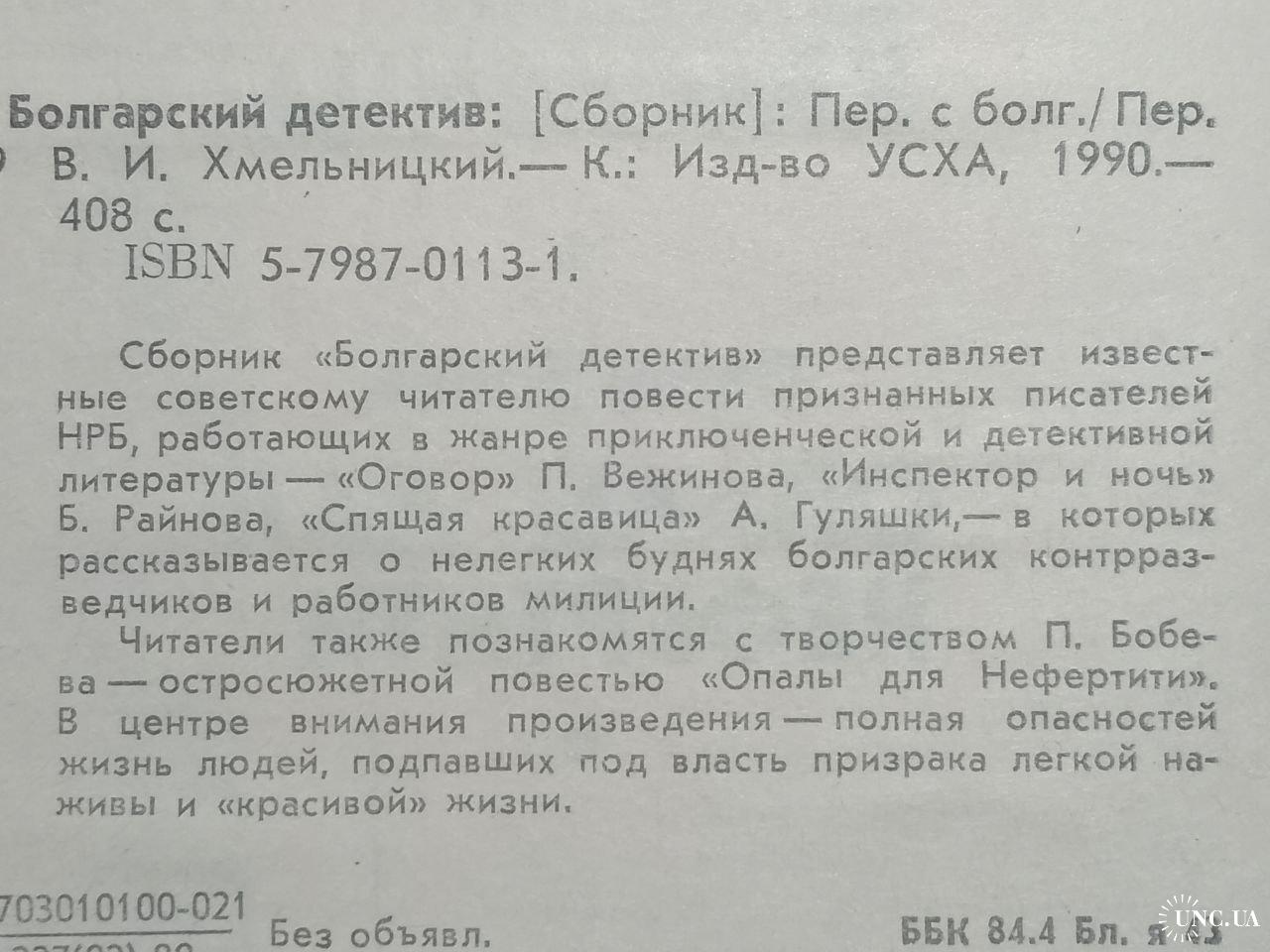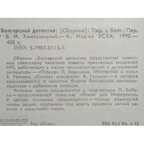 Болгарский детектив. Вежинов. Райнов. Гуляшки. Бобев. Издательство: УСХА. 1990 год. В очень хорошем состоянии