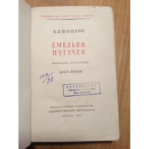 Шишов. Емельян Пугачев. Книга вторая. Издательство Худ Лит 1955 год