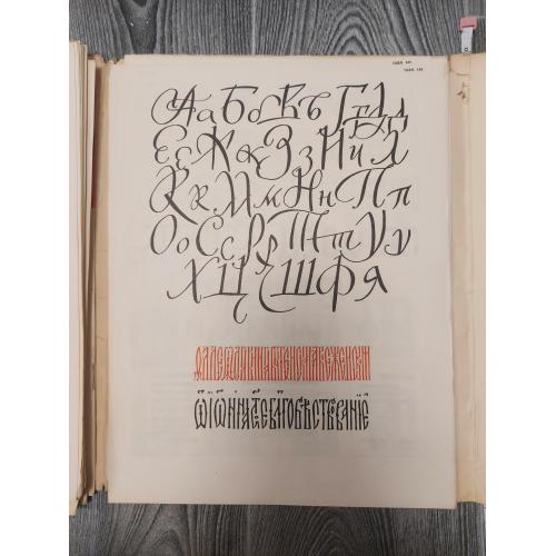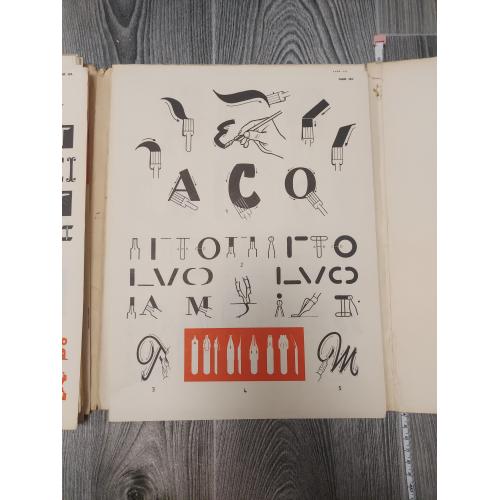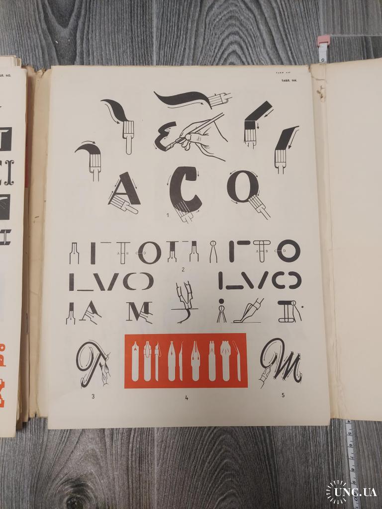 Цей альбом-посібник дає багато зразків написання літер алфавіту всіх сучасних гарнітур шрифтової графіки. Особливої уваги заслуговують подані таблиці алфавітів шрифтів рубаного, гротеску, рекламного і декоративного, курсивів та багатьох інших, 154 таблиці.