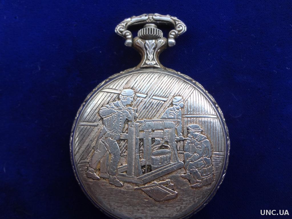На обоих крышках изображены средневековые рабочие на рудниках.