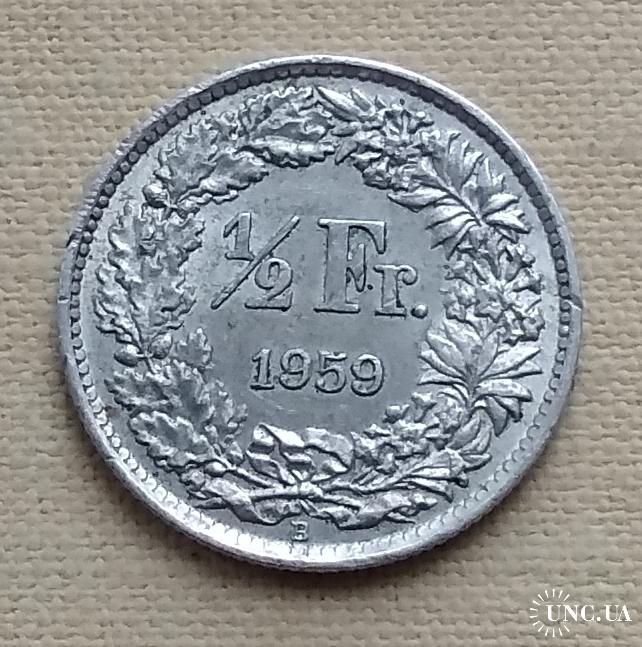 ОригиналШвейцария ½ франка, 1959 г, серебро