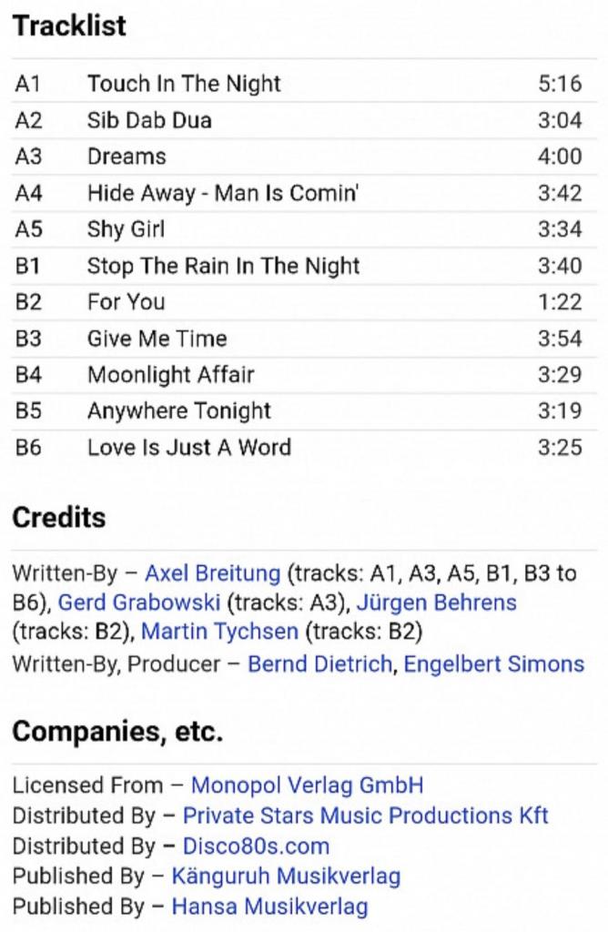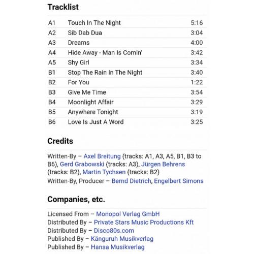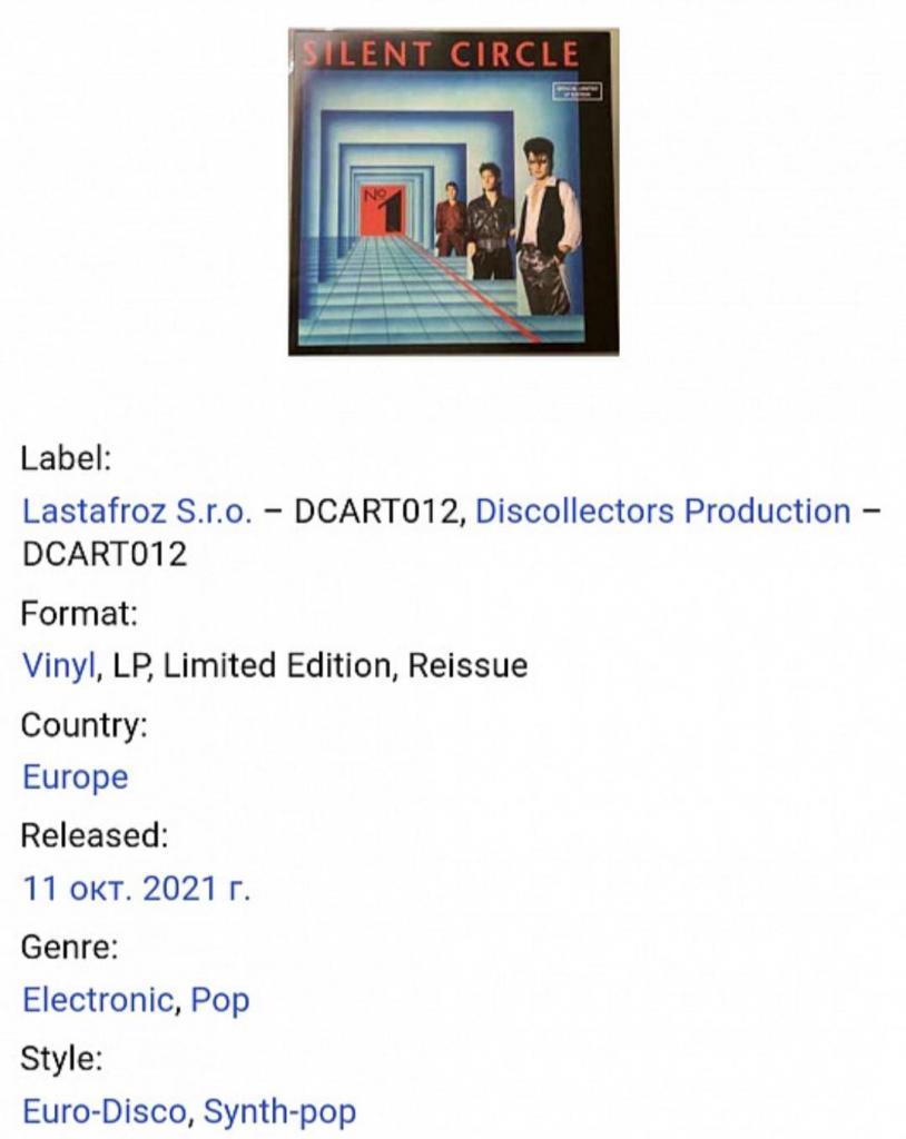 Вінілова платівка. Перший, в дискографії, студійний альбом, Німецької італо диско, євро диско групи Silent Circle, яка складалась з учасників Мартіна Тіхсена, Юргена Беренса та Харальда Шефера (No. 1) 1986. Випуск фірми (Lastafroz S. r. o. / Discollectors Production) Europe, 2021-ий рік. Лімітований тираж (Limited Edition). Видання нове, запаковане. Категорія S/S. Відправка по Україні службами доставки: Нова Пошта, Укр Пошта, Делівері. Також відправляємо посилки за кордон по цілому світу.