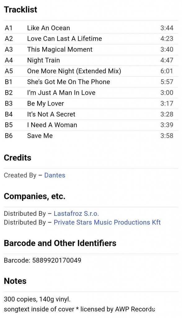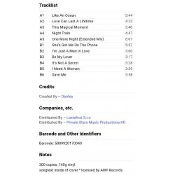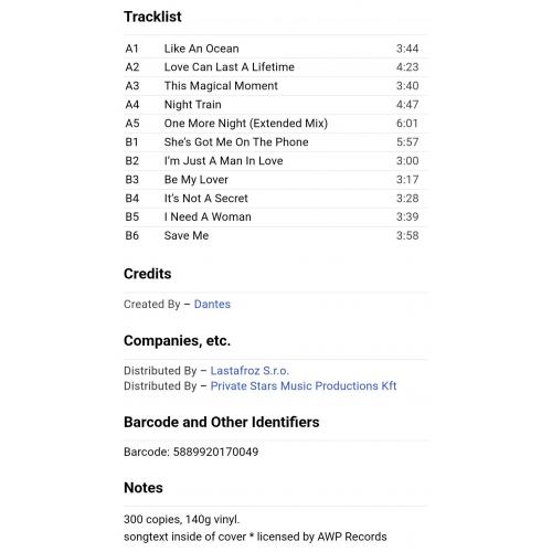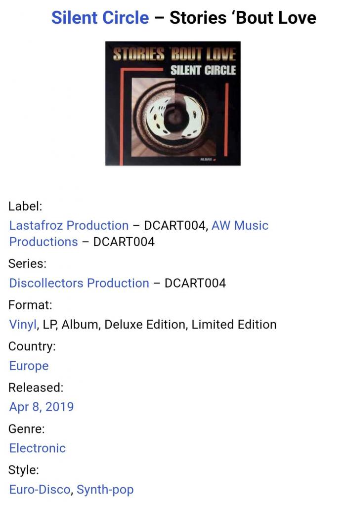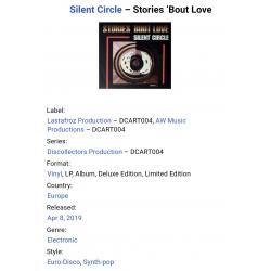 Вінілова платівка. Третій, в дискографії, студійний альбом, Німецької італо диско, євро диско групи Silent Circle, яка складалась з учасників Мартіна Тіхсена, Юргена Беренса та Харальда Шефера (Stories 'Bout Love) 1998. Випуск фірми (Lastafroz Production / AW Music Production) Europe, 2019-ий рік. Оригінальне, першопресове видання. Лімітований тираж (Limited Edition). 300 копій. Видання нове, запаковане. Категорія S/S. Відправка по Україні службами доставки: Нова Пошта, Укр Пошта, Делівері. Також відправляємо посилки за кордон по цілому світу.
