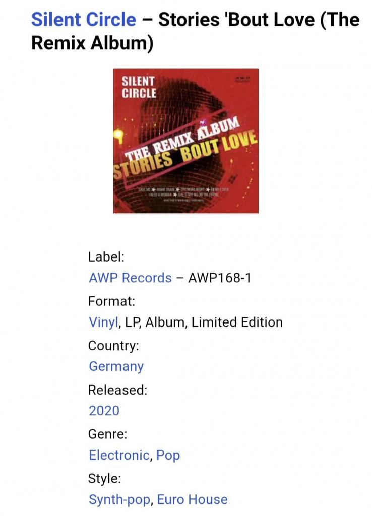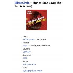 Вінілова платівка. Реміксовий студійний альбом, Німецької італо диско, євро диско групи Silent Circle, яка складалась з учасників Мартіна Тіхсена, Юргена Беренса та Харальда Шефера (Stories 'Bout Love. The Remix Album) 2020. Випуск фірми (AWP Records) Germany, 2020-ий рік. Оригінальне, рідне, першопресове Німецьке видання. Лімітований тираж (Limited Edition). Видання нове, запаковане. Категорія S/S. Відправка по Україні службами доставки: Нова Пошта, Укр Пошта, Делівері. Також відправляємо посилки за кордон по цілому світу.
