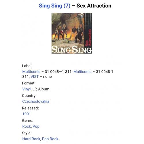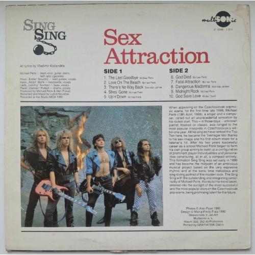 Вінілова платівка. Другий, в дискографії, студійний, альбом Чехословацької, англомовної, хард-рок, глем метал групи Sing Sing (Sex Attraction) 1990. Випуск фірми (Multisonic) Czechoslivakia, 1991-ий рік. Оригінальне, рідне, першопресове Чехословацьке видання. Рідкісне видання (Rare). Стан платівки ЕХ+. Конверт ламінований. Стан конверту ЕХ+. Відправка по Україні службами доставки: Нова Пошта, Укр Пошта, Делівері. Також відправляємо посилки за кордон по цілому світу.