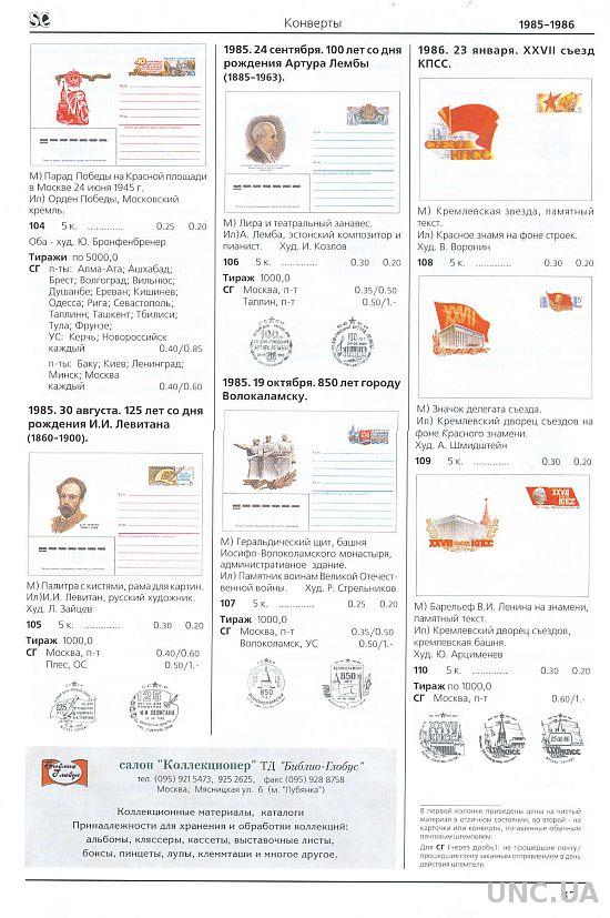 Каталог карточек и конвертов с оригинальными марками 1923 - 1991 года