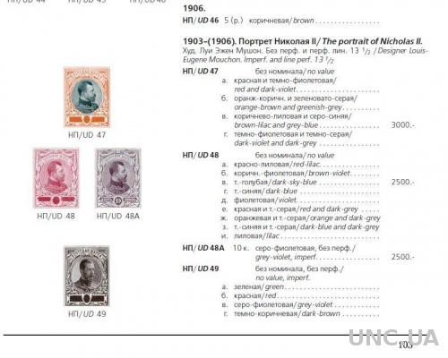 В каталоге представлены почтовые марки Российской империи, их разновидности, пробы и образцы, а также приведены неутвержденные проекты марок. Приведены сведения о цельных вещах, тарифах различных почтовых отправлений и почтовых штемпелях. Дана относительная стоимость филателистического материала.