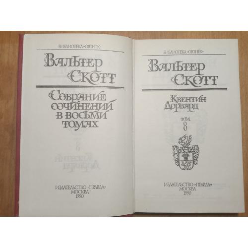 Скотт Вальтер. Собрание сочинений в 8 томах. Том 8. Квентин Дорвард. Библиотека Огонек. Издательство: Правда. 1990 год. Книга не читана. Но есть повреждение на верхней крышке обложки (на фото).