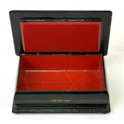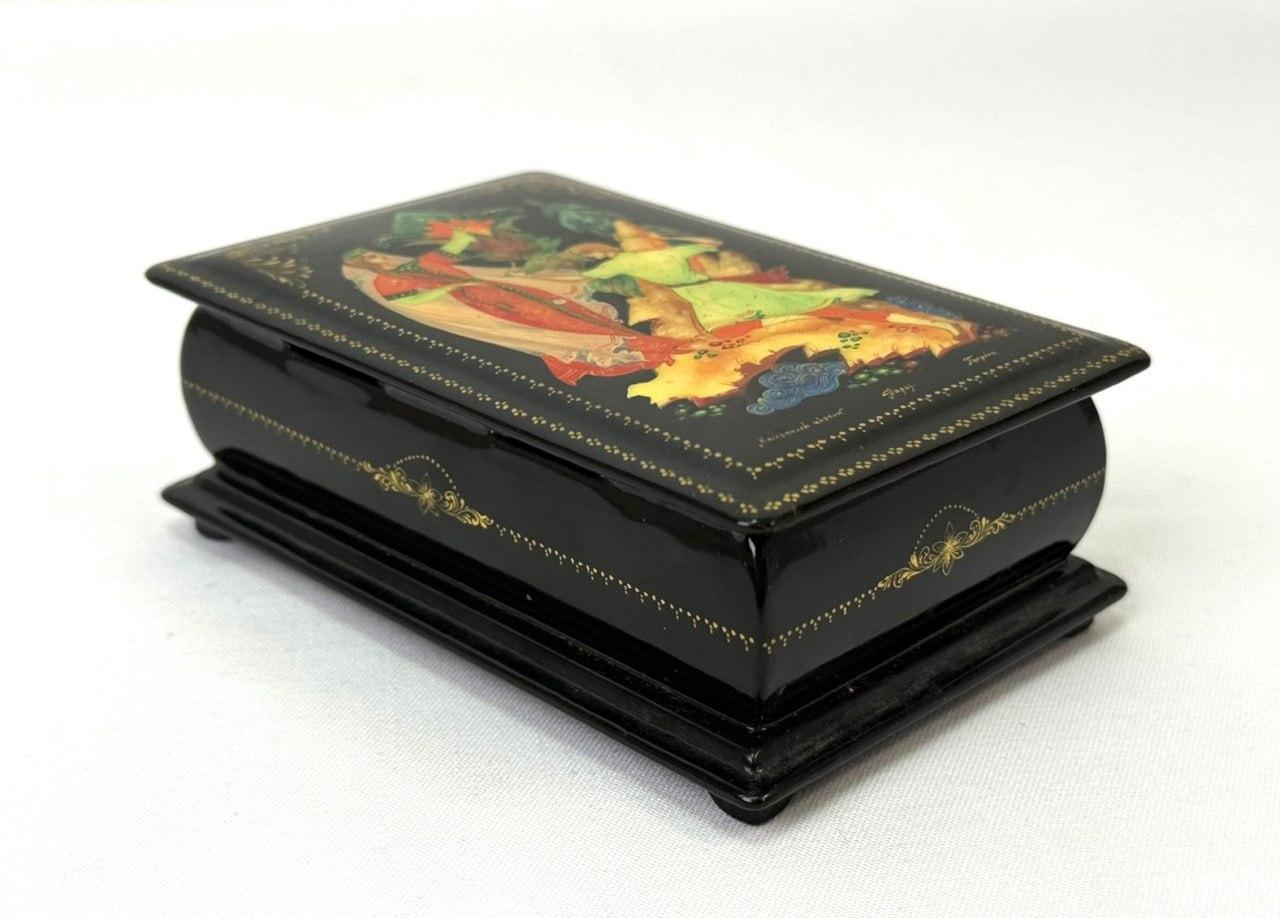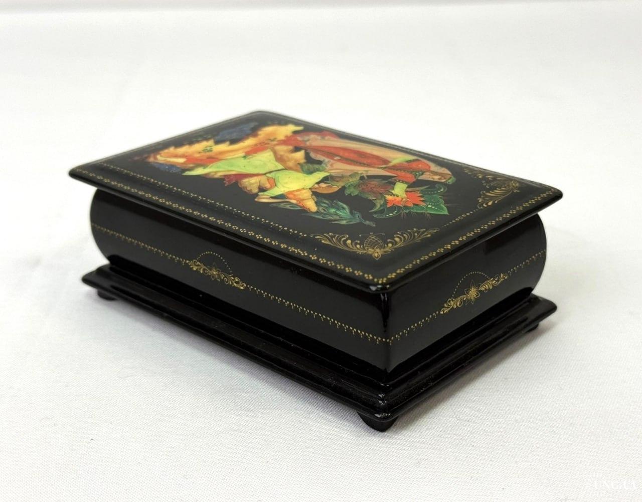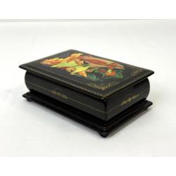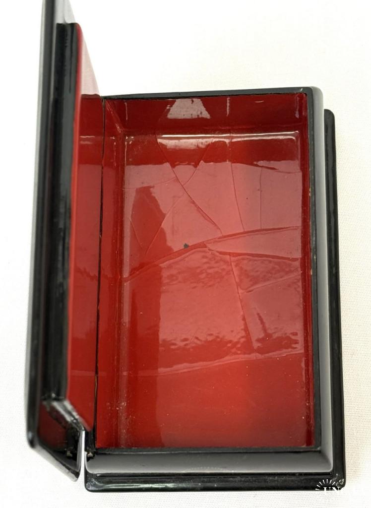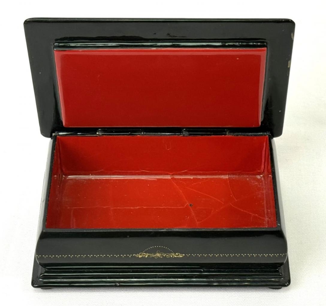 Шкатулка має волосисі тріщинки лакового шару.