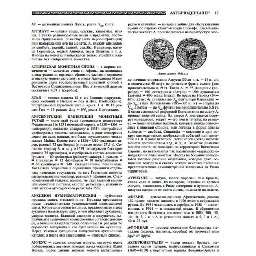 «Словарь нумизмата» — Колоссальное по широте охвата материала издание включает не только подробное описание предметов и понятий собственно нумизматики, но и сведения по истории возникновения и развития монетного дела с древнейших времен до наших дней. Книга снабжена обширным справочным аппаратом.