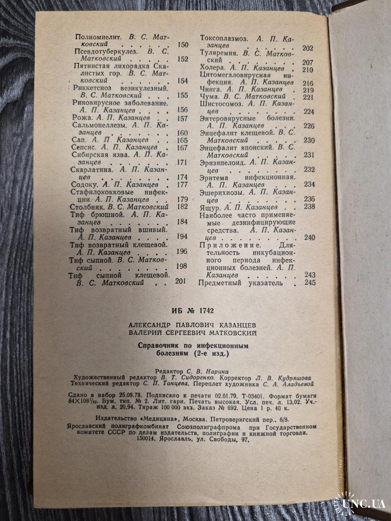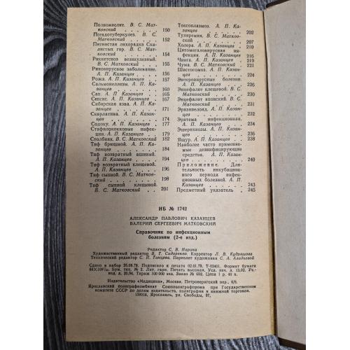 Справочник по инфекционным болезням, 1979. А. П. Казанцев, В. С. Матковский.