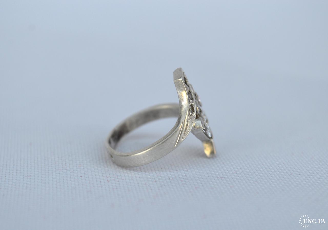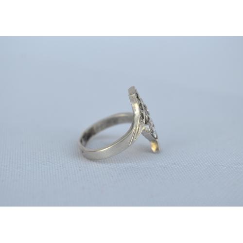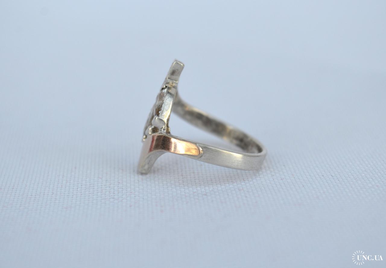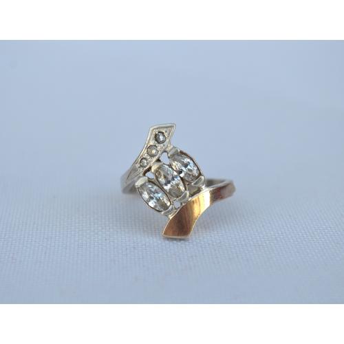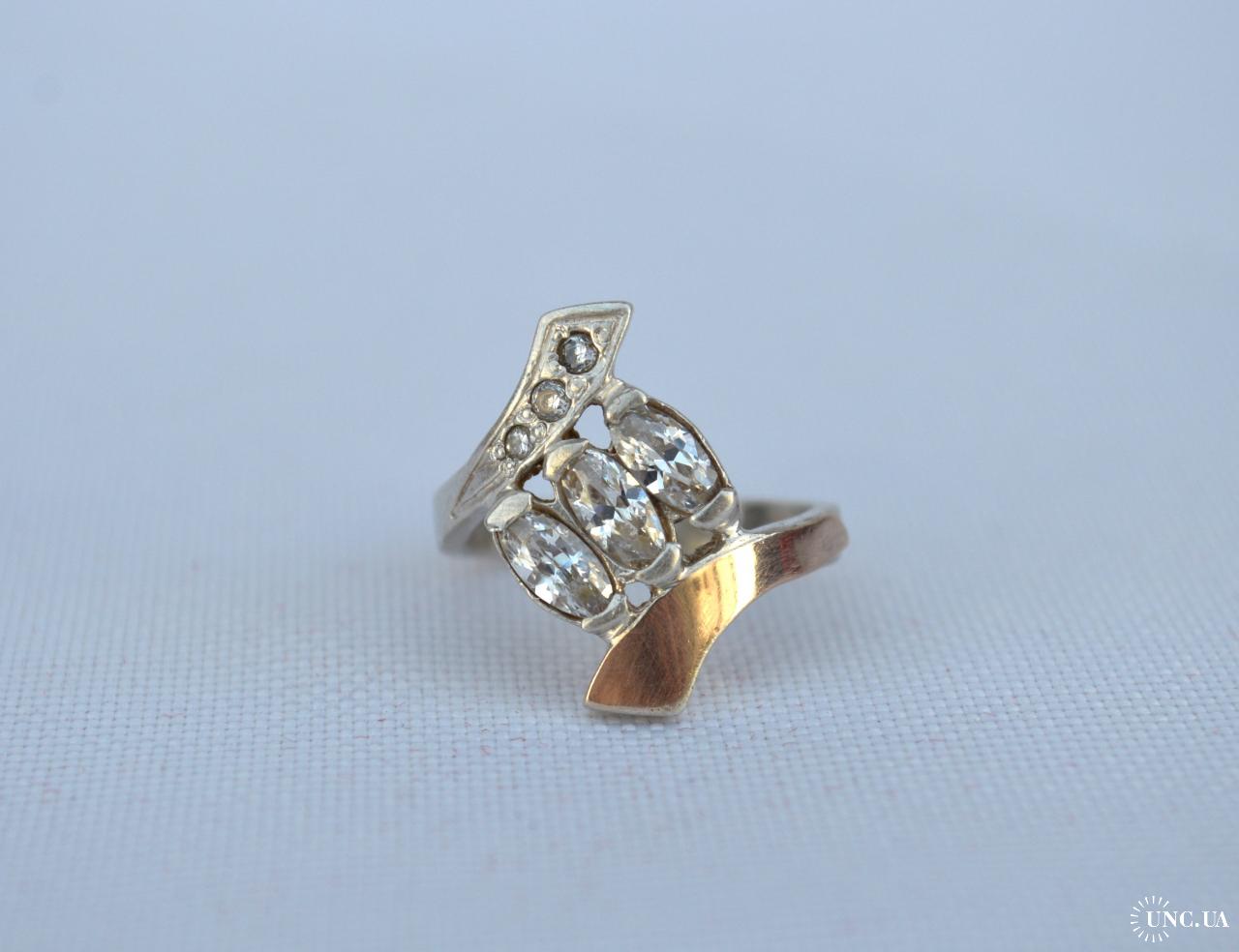 1981-2000Срібна каблучка з золотою накладкою та вставкою камінців кубічного цирконію, 925*., 585*. 7 КВС. Діаметр кільця 17 мм. Вага 3,36 грам.
