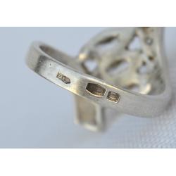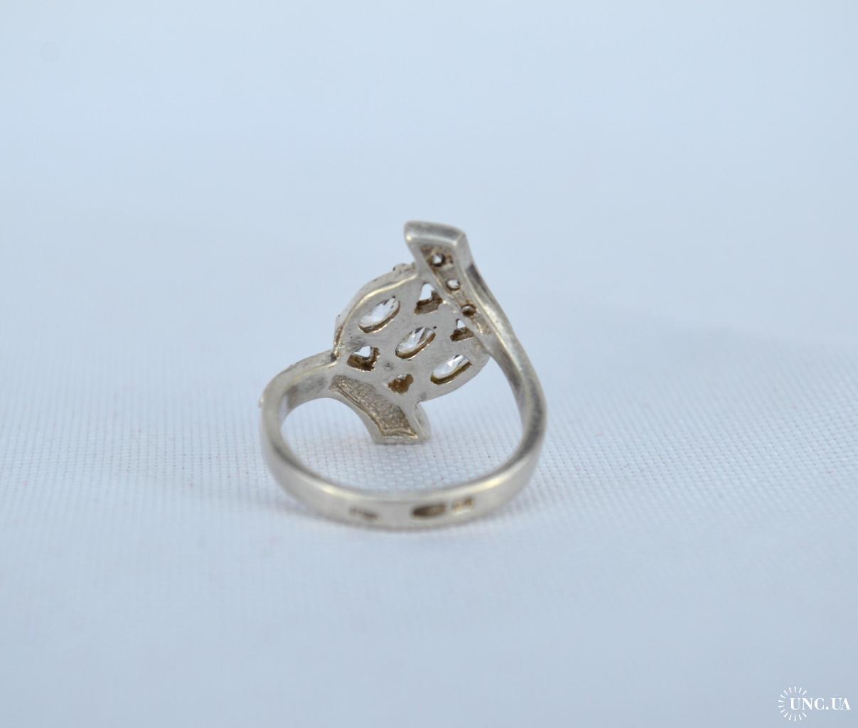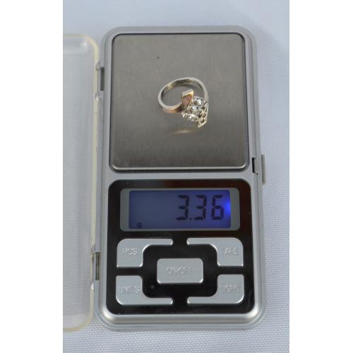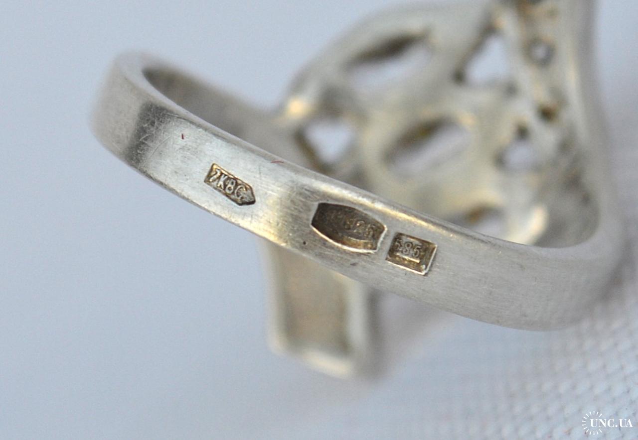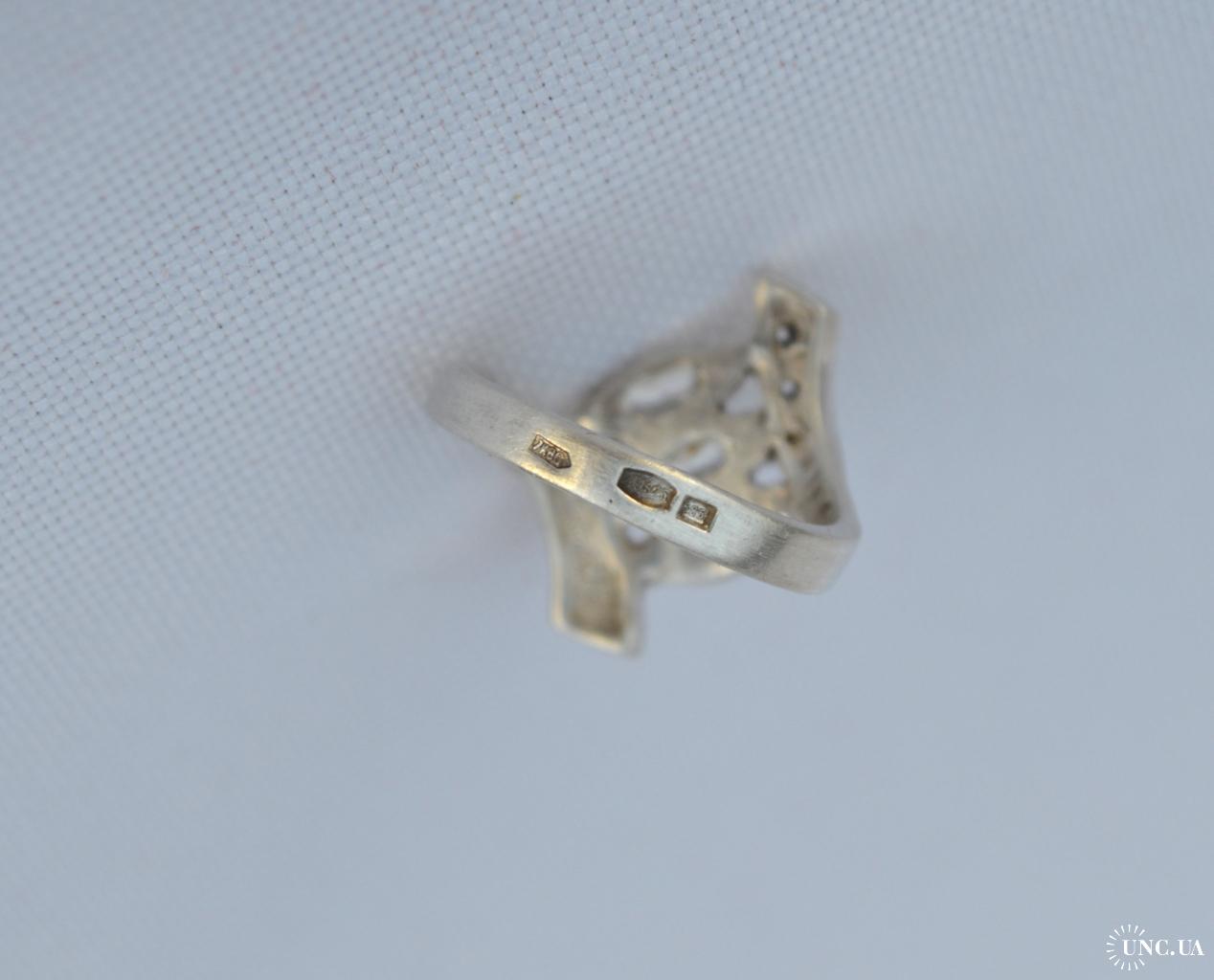1981-2000Срібна каблучка з золотою накладкою та вставкою камінців кубічного цирконію, 925*., 585*. 7 КВС. Діаметр кільця 17 мм. Вага 3,36 грам.