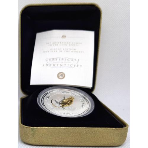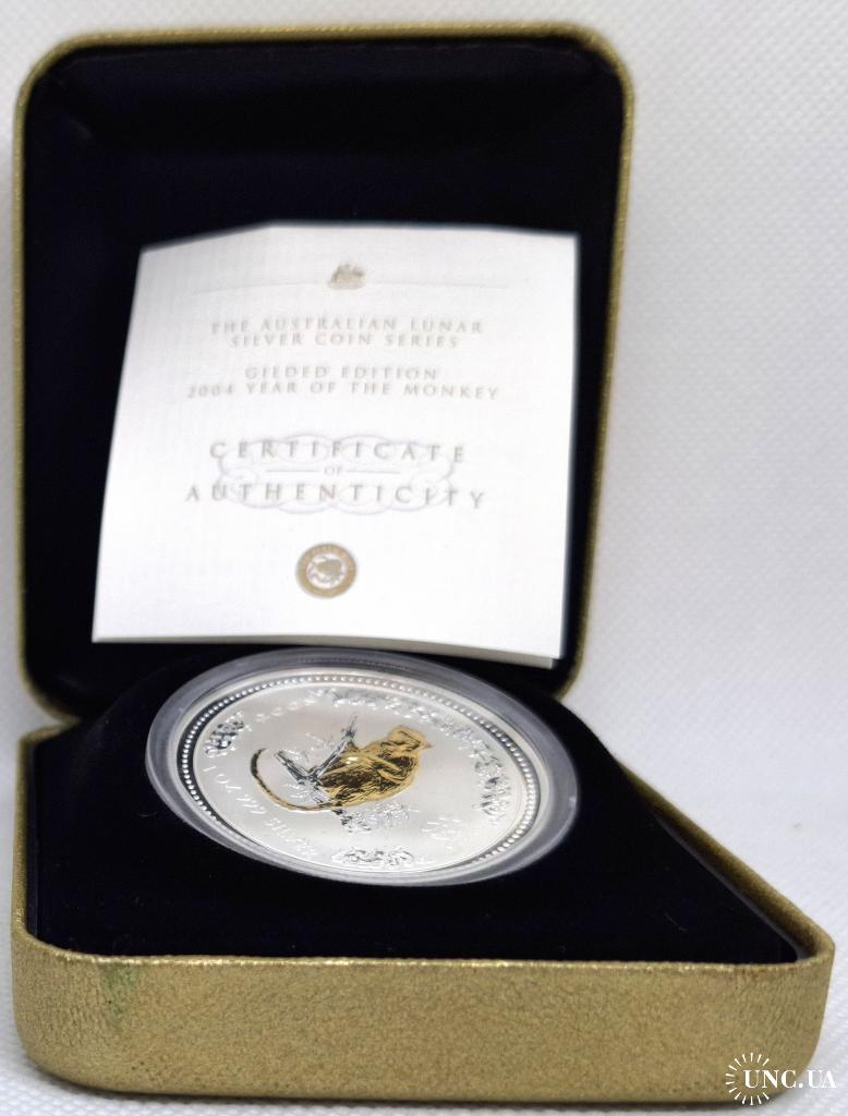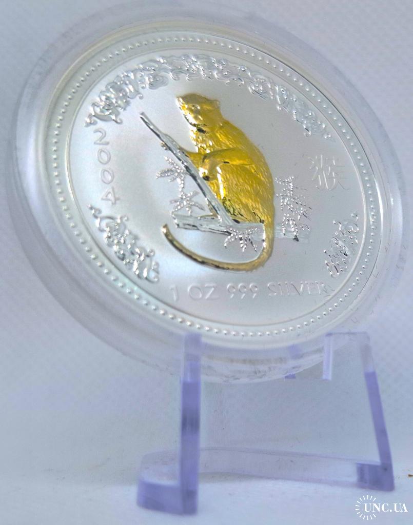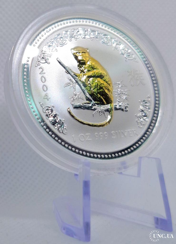 Продаю колекційну срібну монету Australia Lunar Series I — 1 Dollar 2004 “Year of the Monkey” (Gilded Edition).
