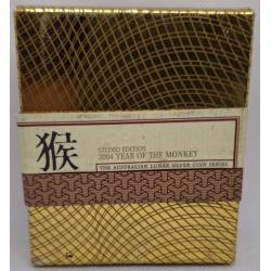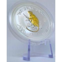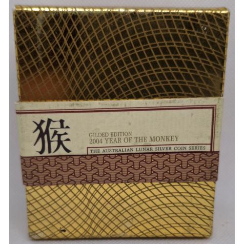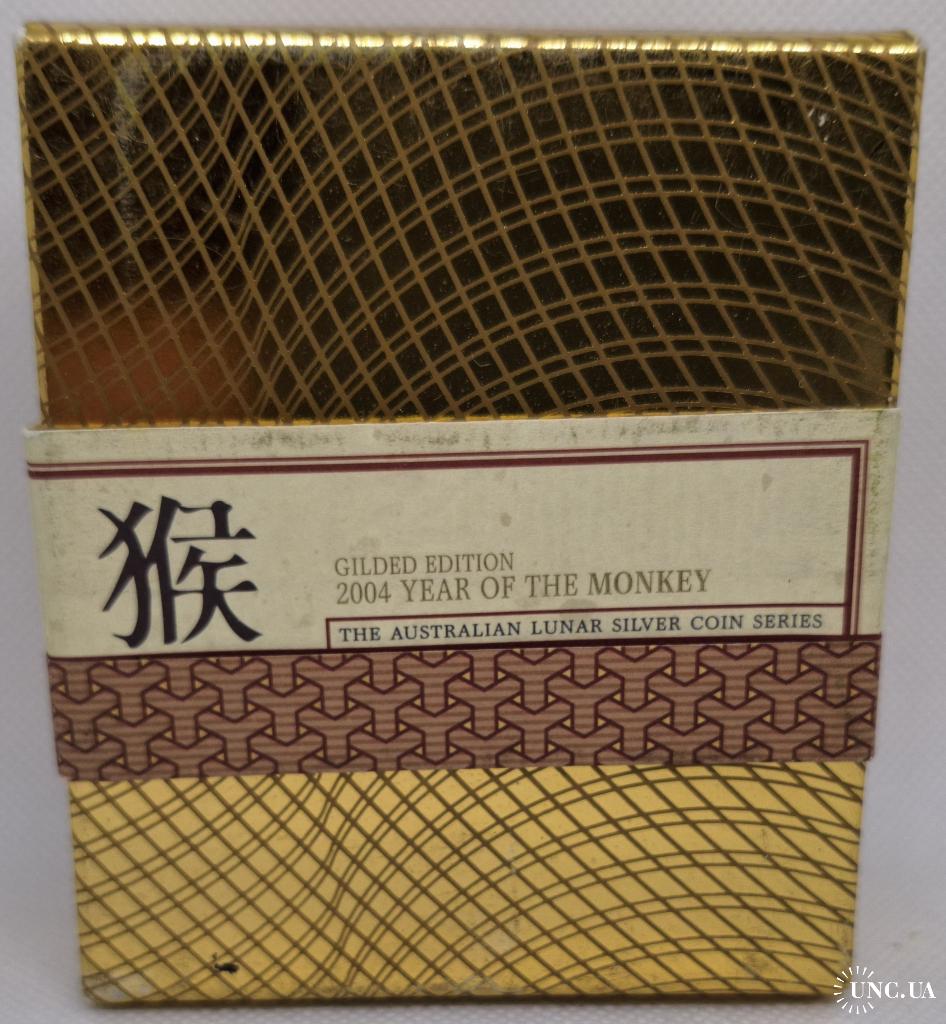 Year of the Monkey 2004 (Gilded Edition) — це 1 унція чистого срібла, доповнена 24k позолотою, яка виділяє зображення мавпи й створює ефект справжньої дорогоцінності.