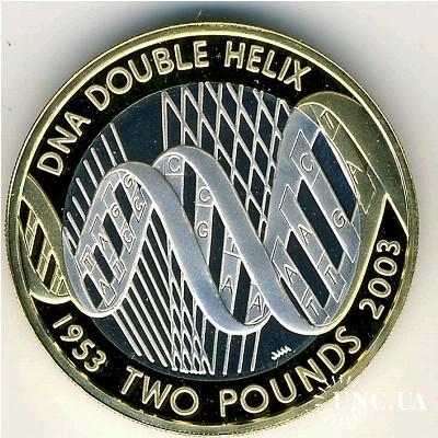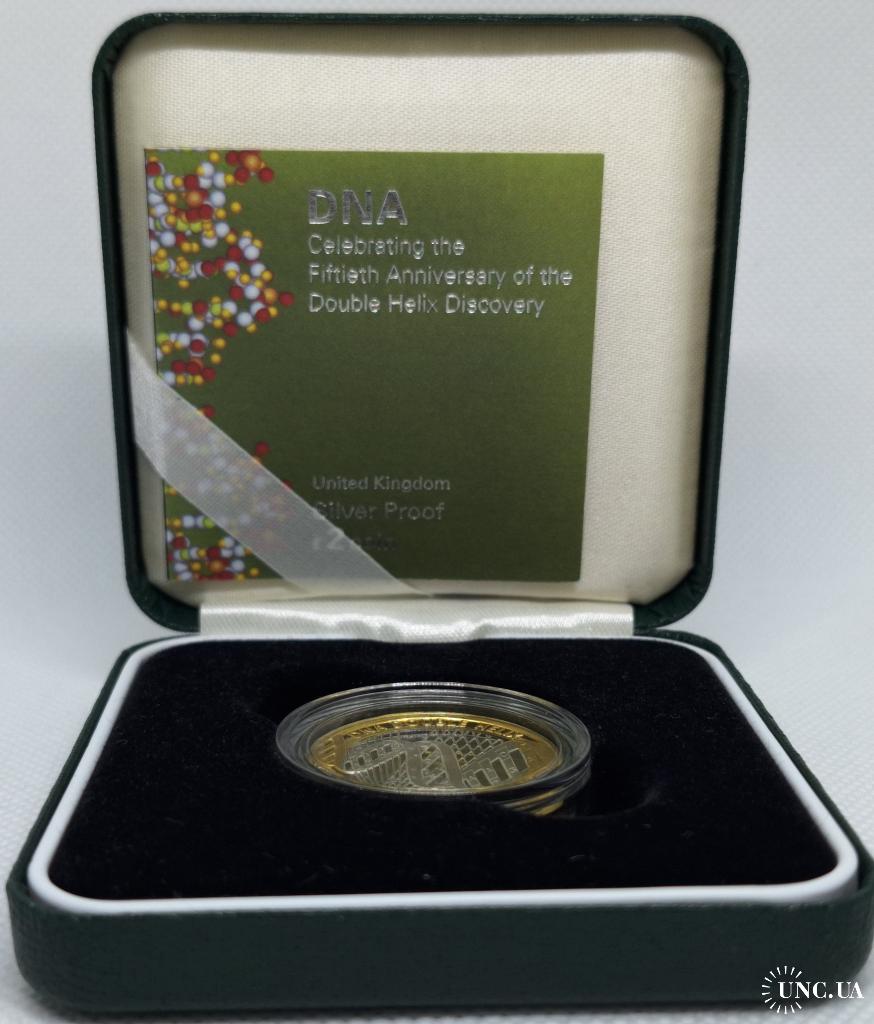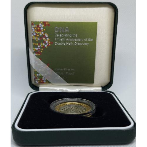 ОригиналПродаю колекційну срібну монету United Kingdom £2 — Discovery of the Structure of DNA (2003).