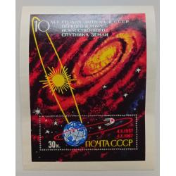 КосмосСССР 1967 10-летие первого искусственного спутника Земли, блок, MNH