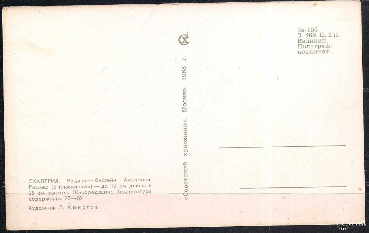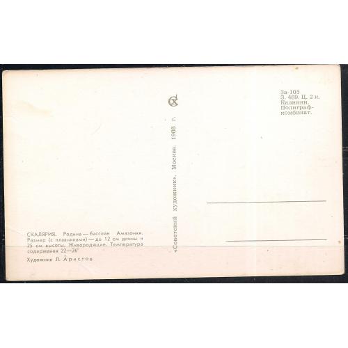Фаунапочтовая открытка без марки, 1968 г., почтовая открытка, фауна, рыбки, Скалярия, живородящая. Родина - Амазония, стоимостью 15 грн.