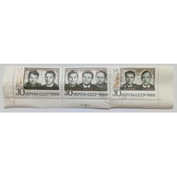 КосмосСССР 1969 Групповой космический полет Союз 6,7,8, сцепка с полями, гашеная