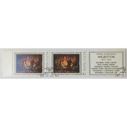 ИскусствоСССР 1976 Федотов, 10к., сцепка с купоном, гашеные