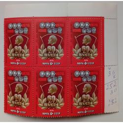 Другая темаСССР 1978 60 лет ВЛКСМ, угловой шестиблок с полями, MNH