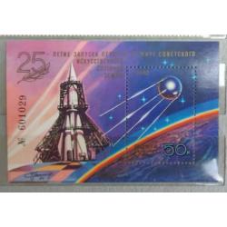 КосмосСССР 1982 марка блок 25 лет запуску первого в мире искусственного спутника Земли