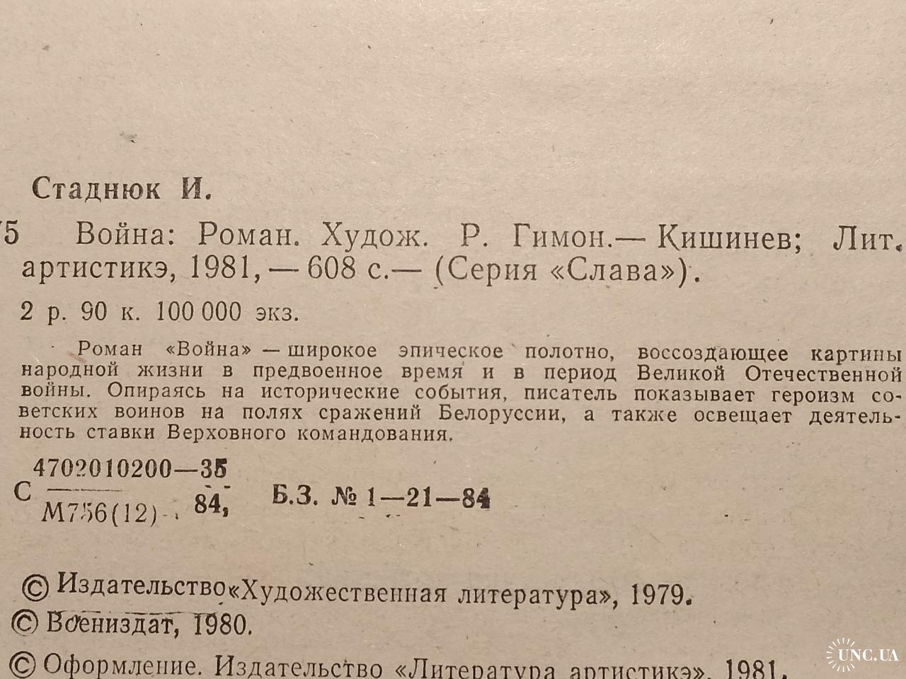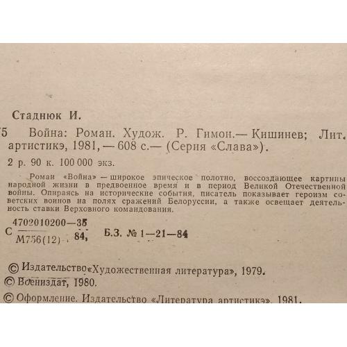 Стаднюк. Война. Серия Слава. Издательство: Кшн. Литература Артистикэ. 1984 год. Ув формат. Очень хорошее состояние