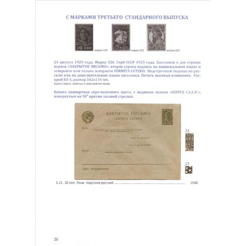 Описание: Вашему вниманию предлагается первый подробный Каталог стандартных маркированных конвертов почты СССР, включающий описание всех известных на конец 2014 года выпусков. В предыдущих реестрах стандартных конвертов СССР содержится информация примерно по трёмстам позициям, в предлагаемом вашему вниманию Каталоге их около 450.