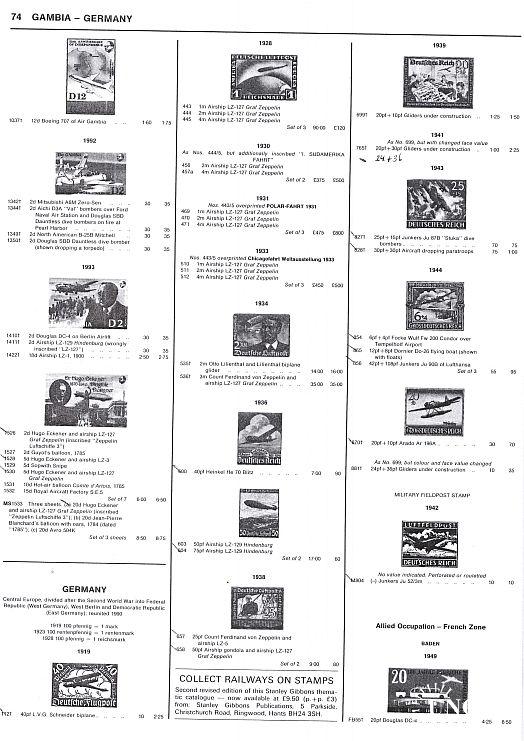 Обширный каталог почтовых марок на авиационную тематику, таких как самолеты, дирижабли, воздушные шары и вертолеты.