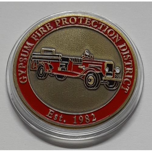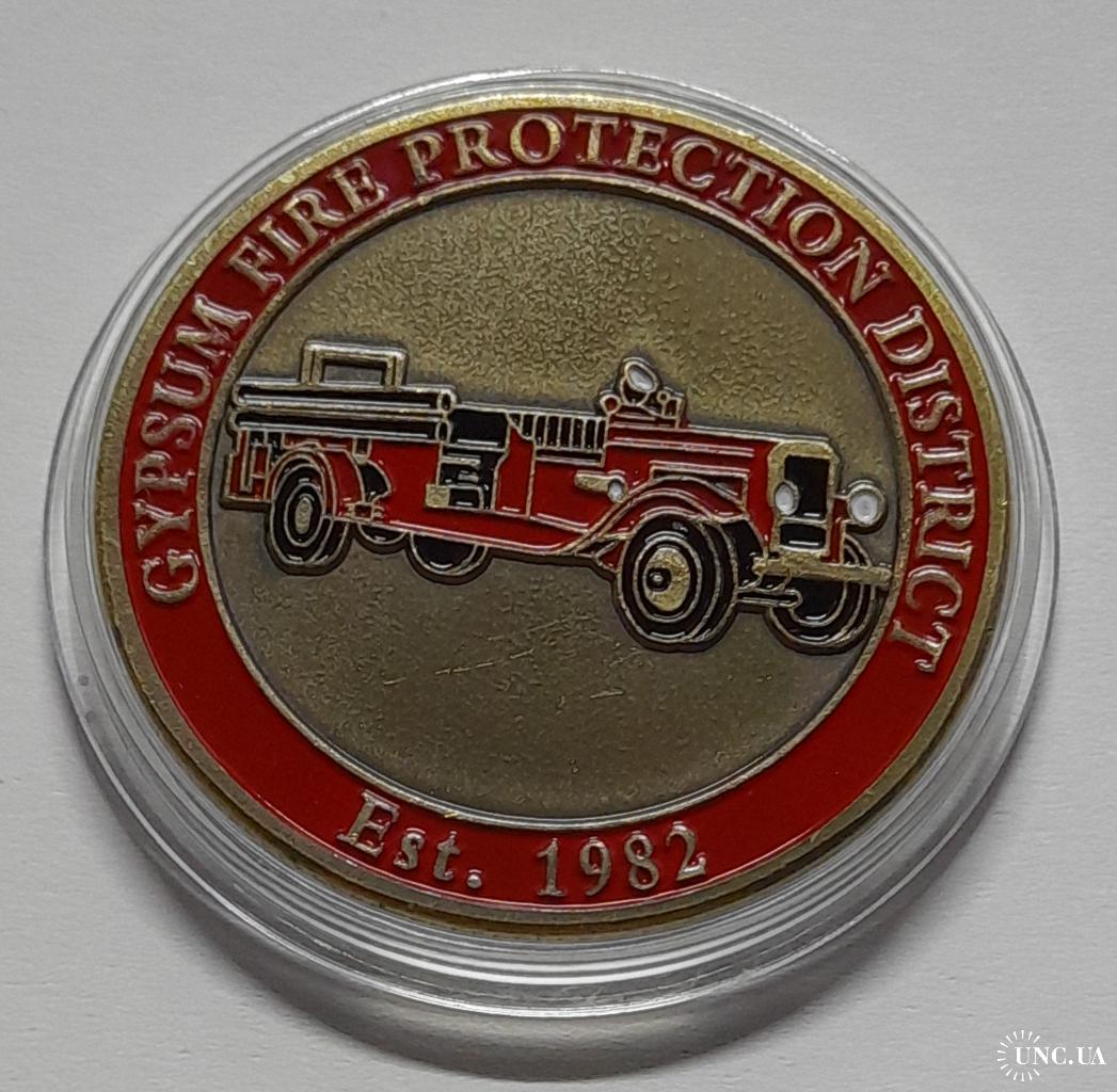 Сувенірна монета: " Пожежний автомобіль ". Монета в капсулі. Діаметр 40 мм. Стан монети на фото.