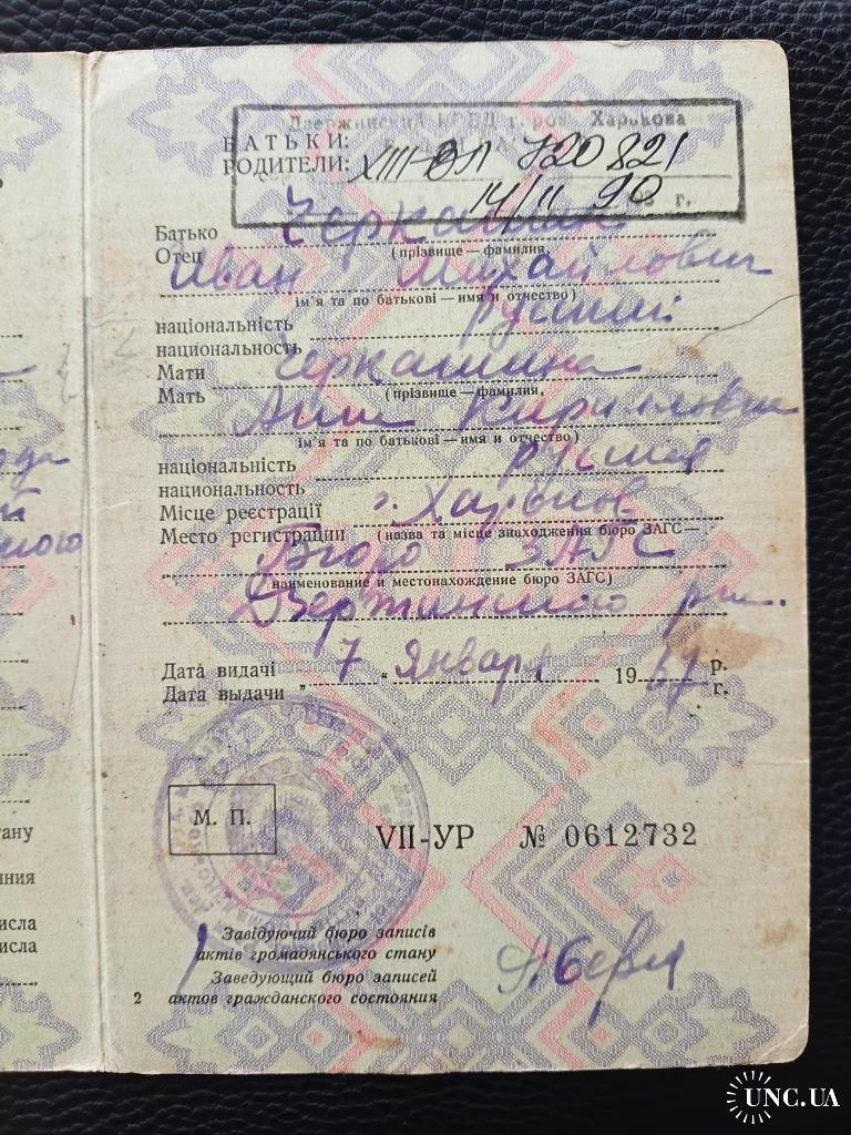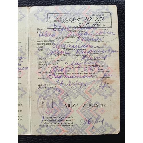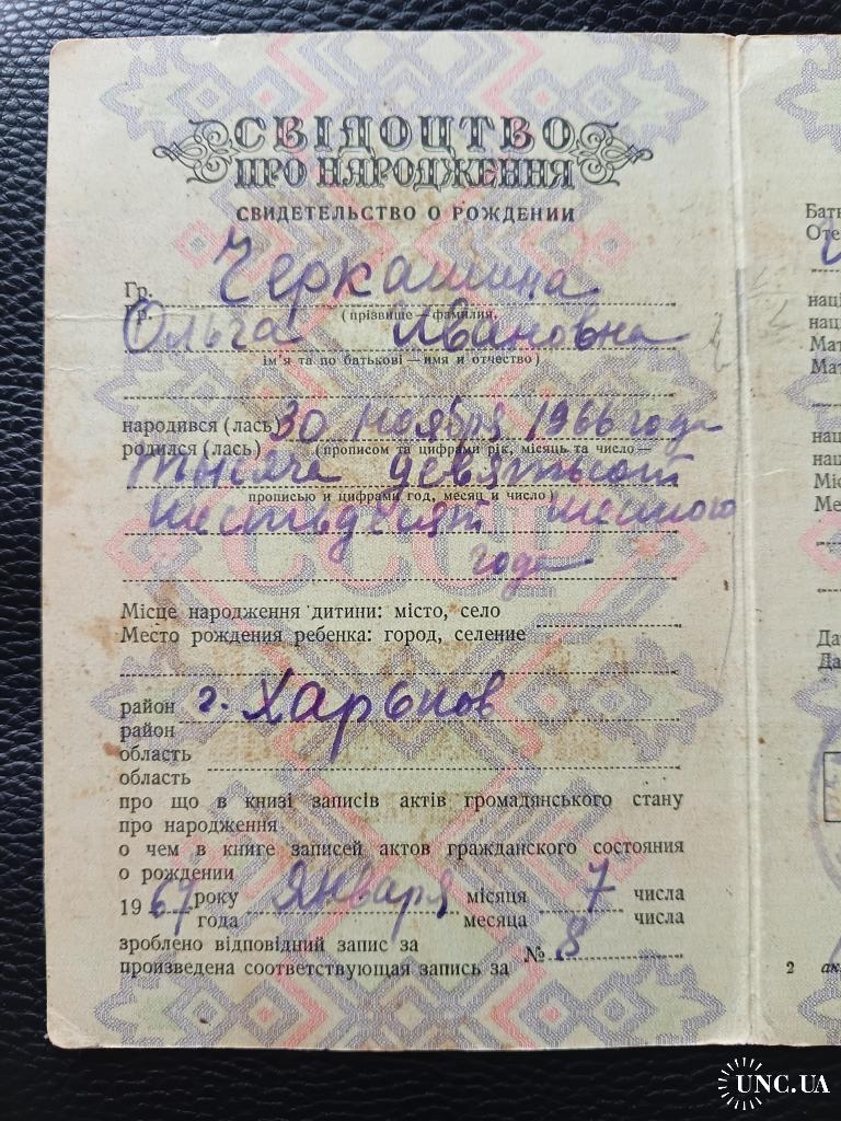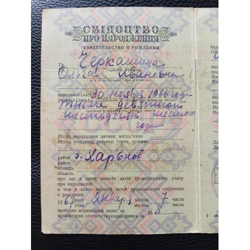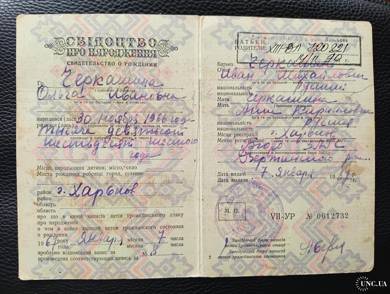 1961-1980Свідоцтво про народження 1966 Свидетельство о рождении