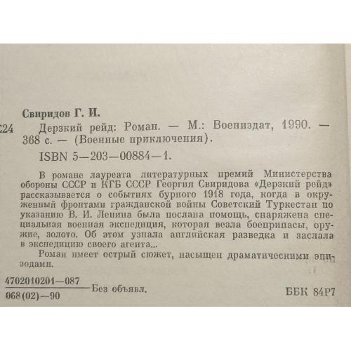 Свиридов. Дерзкий рейд. Серия Военные приключения . Воениздат. 1990 год. Состояние близкое к отличному