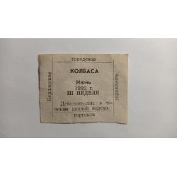 отсутствуетТалон. ТНС. ТНП. Україна. Бердянськ. Ковбаса. Червень 1992.