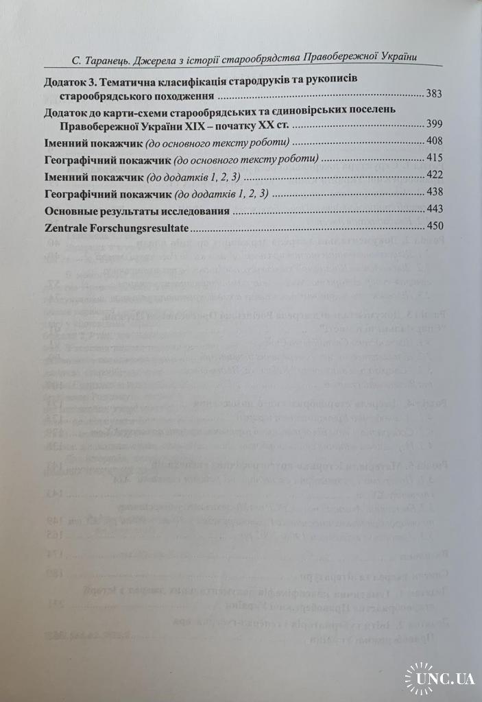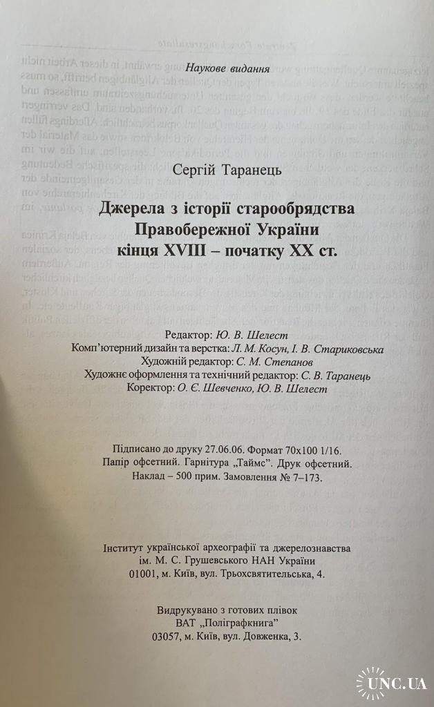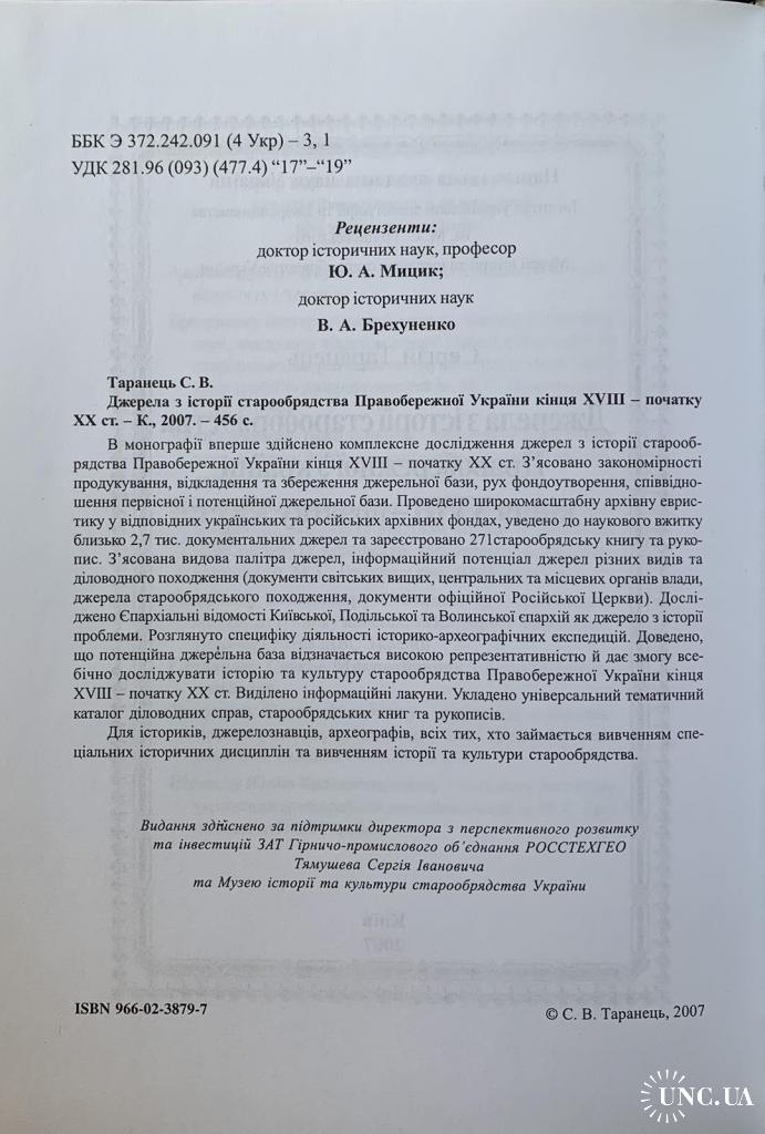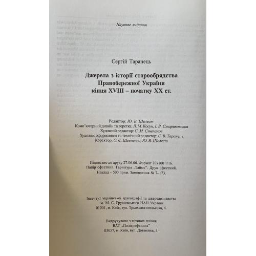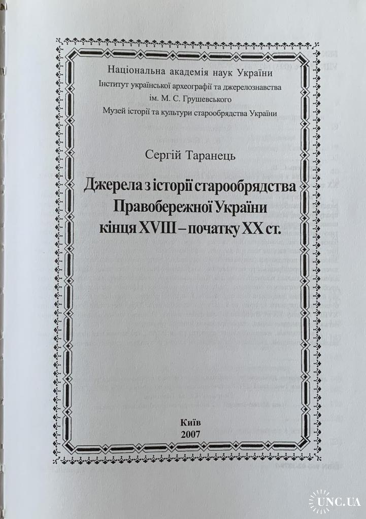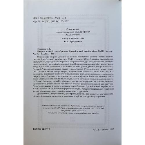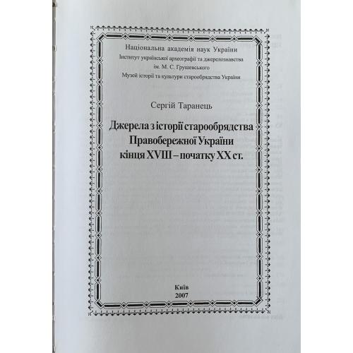 Таранець С.В. «Джерела з історії старообрядства Правобережної України кінця ХVIII - початку ХХ ст.»
