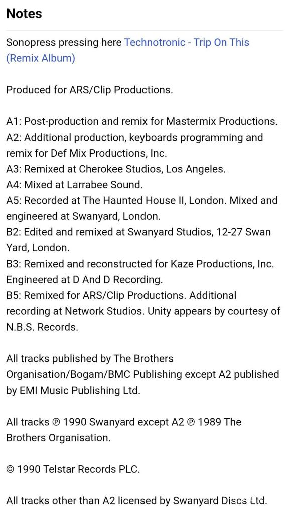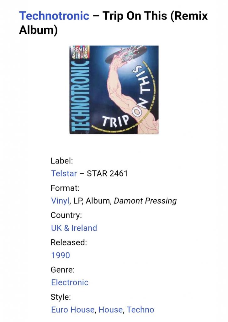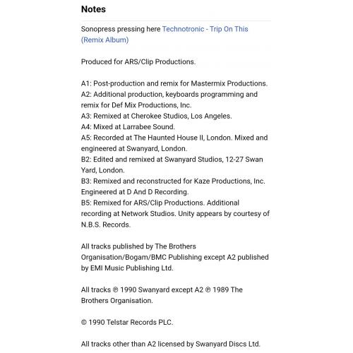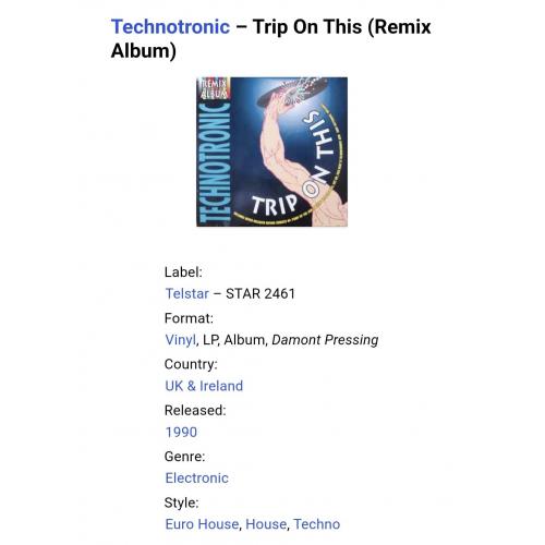 Вінілова платівка. Другий, в дискографії, студійний альбом, Бельгійської техно денс, євро хаус групи Technotronic, до складу якої, на той час, входили Джо Богарт, Мануела Камозі, більше відома під сценічним ім'ям Ya Kid Ki та MC Eric (Trip On This. Remix Album) 1990. Випуск фірми (Telstar) UK & Irelands, 1990-ий рік. Оригінальне, першопресове, Британсько-Ірландське видання. Стан платівки EX+. Конверт глянцевий. Стан конверту EX+. Відправка по Україні службами доставки: Нова Пошта, Укр Пошта, Делівері. Також відправляємо посилки за кордон по цілому світу.