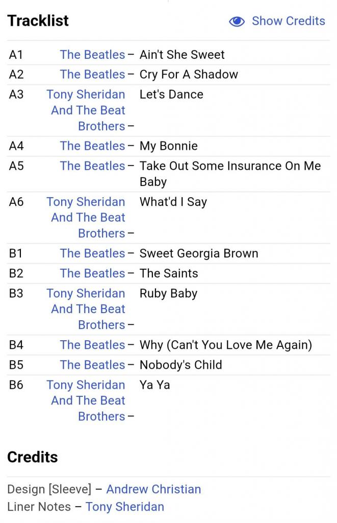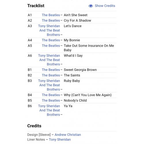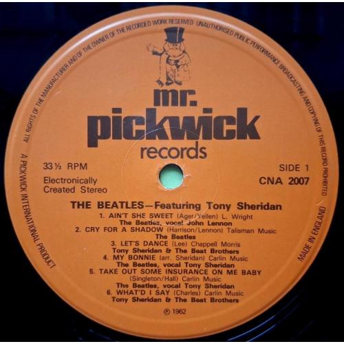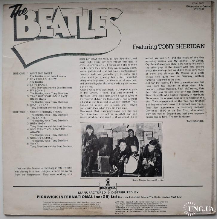 Вінілова платівка. Живий виступ. Концертні записи виступів в Гамбурзі, легендарної Британської біг-біт, рок-групи із Ліверпуля, The Beatles, яка складалась на той час з учасників Джона Леннона, Пола Маккартні, Джорджа Харрісона, Стюарта Саткліффа та Піта Беста (Beatles Feat Tony Sheridan) 1962. Випуск фірми (Contour / Mr. Pickwick) England, 1976-ий рік. Оригінальне Британське видання. Стан платівки ЕХ+. Конверт глянцевий. Стан конверту ЕХ+. Відправка по Україні службами доставки: Нова Пошта, Укр Пошта, Делівері. Також відправляємо посилки за кордон по цілому світу.