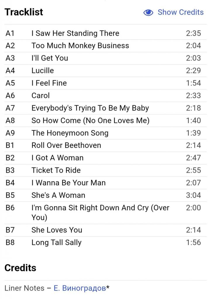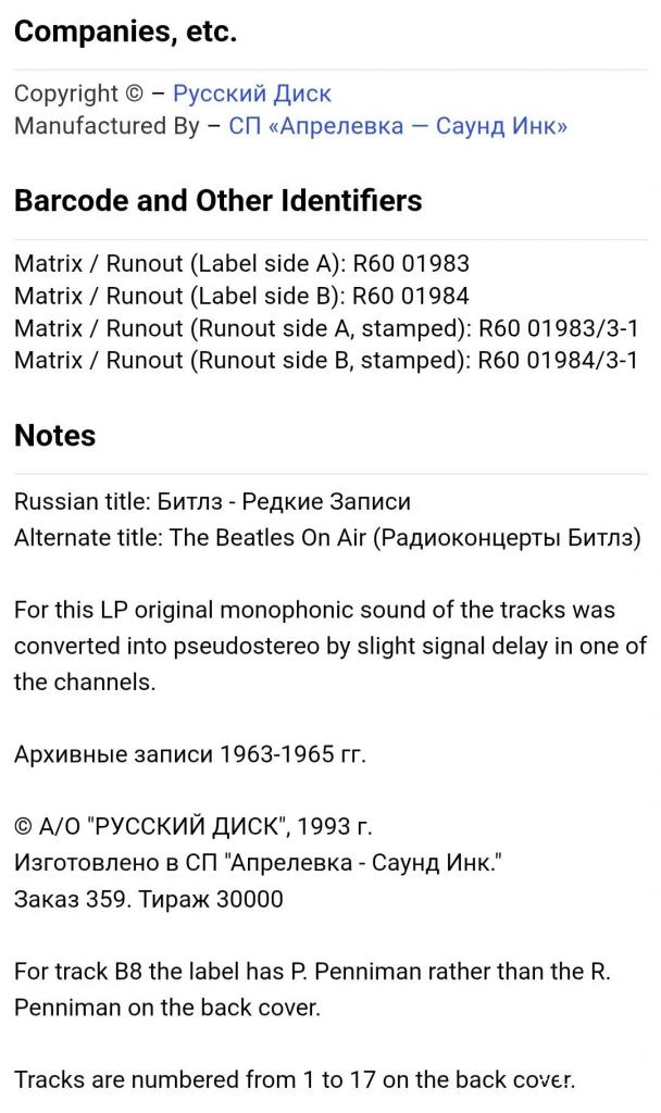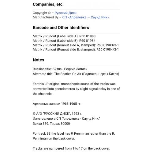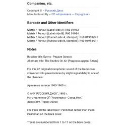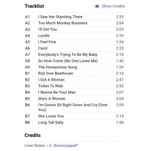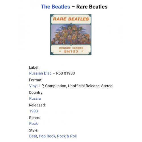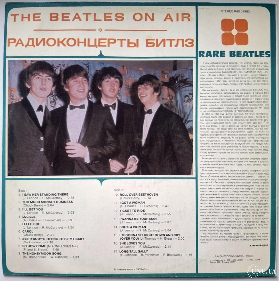 Вінілова платівка. Збірка рідкісних радіо записів легендарної Британської біг-біт, рок-групи із Ліверпуля, The Beatles, яка складалась на той час з учасників Джона Леннона, Пола Маккартні, Джорджа Харрісона та Рінго Старра (On Air. Rare Beatles) 1963-65. Випуск фірми (Russian Disc) Russia, 1993-ій рік. Рідкісне видання (Rare). Лімітований тираж (Limited Edition). Стан платівки NM. Стан конверту NM-. Відправка по Україні службами доставки: Нова Пошта, Укр Пошта, Делівері. Також відправляємо посилки за кордон по цілому світу.