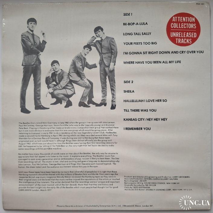 Вінілова платівка. Збірка рідкісних, рарітетних записів легендарної Британської біг-біт, рок-групи із Ліверпуля, The Beatles, яка складалась на той час з учасників Джона Леннона, Пола Маккартні, Джорджа Харрісона та Рінго Старра ( Rare Beatles) 1962. Випуск фірми (Phoenix Records) England, 1982-ий рік. Оригінальне, першопресове Британське видання. Стан платівки NM-. Стан конверту NM-/ ЕХ+. В рідній, захисній плівці. Відправка по Україні службами доставки: Нова Пошта, Укр Пошта, Делівері. Також відправляємо посилки за кордон по цілому світу.