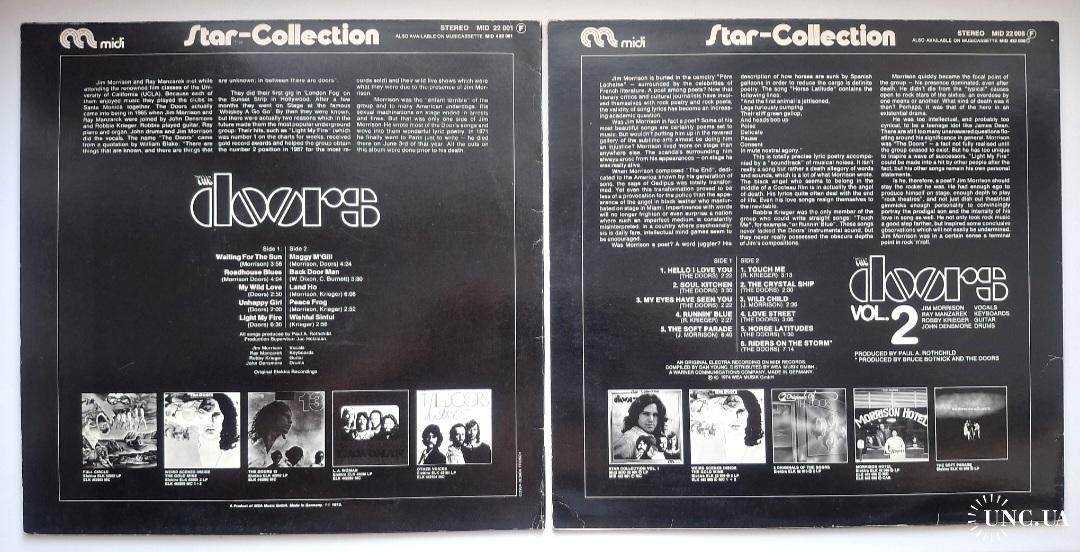Вінілові платівки. Збірка найкращих хітів, за всю дискографію, Американської прог-рок, психоделік-рок групи з Лос Анджелеса, The Doors, учасниками якої, най той час, були, Джим Моррісон, Рей Манзарек, Роббі Крігер та Джон Денсмор (Star-Collection) 1967-71. Випуск фірми (Midi) Germany, 1972, 1974-і ріки. Видання з платівок (2LP), з двох окремих частин. Стан платівок ЕХ+. Стан конвертів ЕХ+. В комплекті рекламні внутрішні вставки від фірми Midi. Відправка по Україні службами доставки: Нова Пошта, Укр Пошта, Делівері. Також відправляємо посилки за кордон по цілому світу.